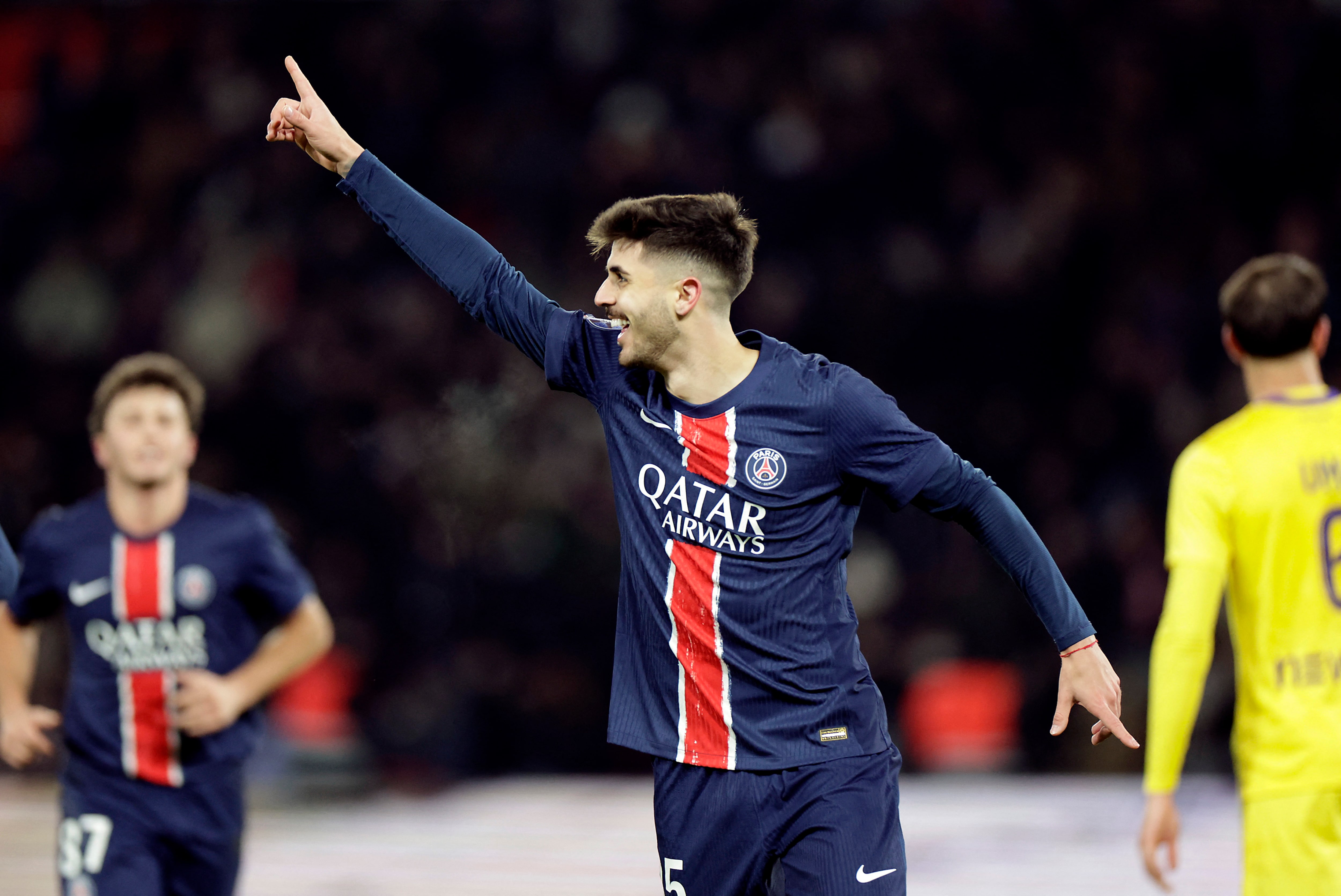 巴黎圣日耳曼球员卢卡斯·贝拉尔多庆祝在2024年11月22日巴黎对图卢兹的法甲联赛中为球队打入第二个进球。摄影:阿卜杜勒·萨布尔 - 路透社巴黎 2024年11月22日(阿拉伯路透社体育服务) - 巴黎圣日耳曼在周五的法甲联赛中以3-0战胜图卢兹,保持了球队在国内的全胜纪录。