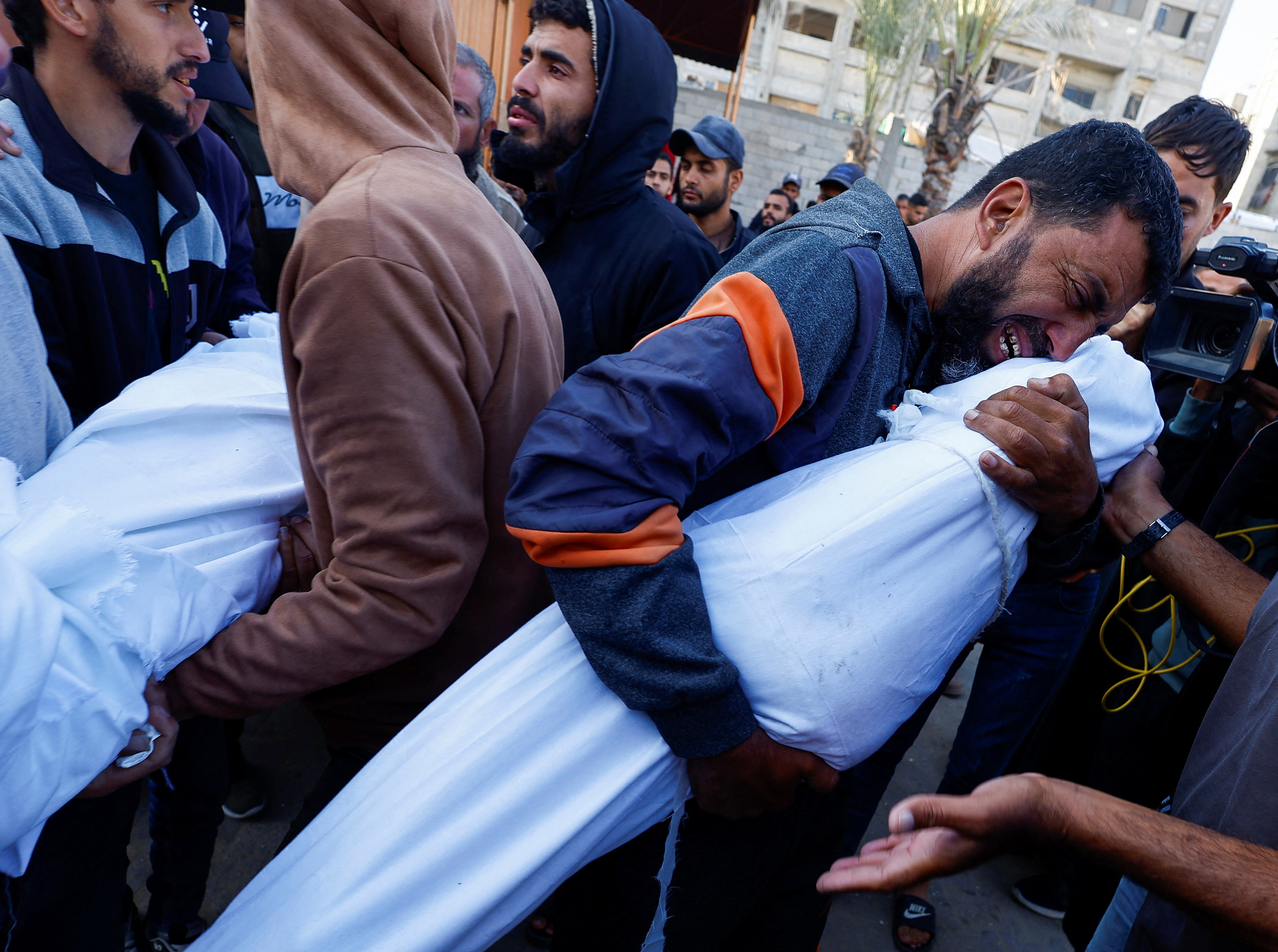 巴勒斯坦人在抱着因以色列空袭在哈尼尤斯的纳赛尔医院被杀的儿子的遗体时痛哭,时间是2024年11月23日。摄影:穆罕默德·萨利姆 - 路透社开罗2024年11月23日(路透社) - 加沙卫生部今天星期六表示,自2023年10月7日以色列对该地区发动军事攻击以来,至少有44176名巴勒斯坦人被杀,104473人受伤。