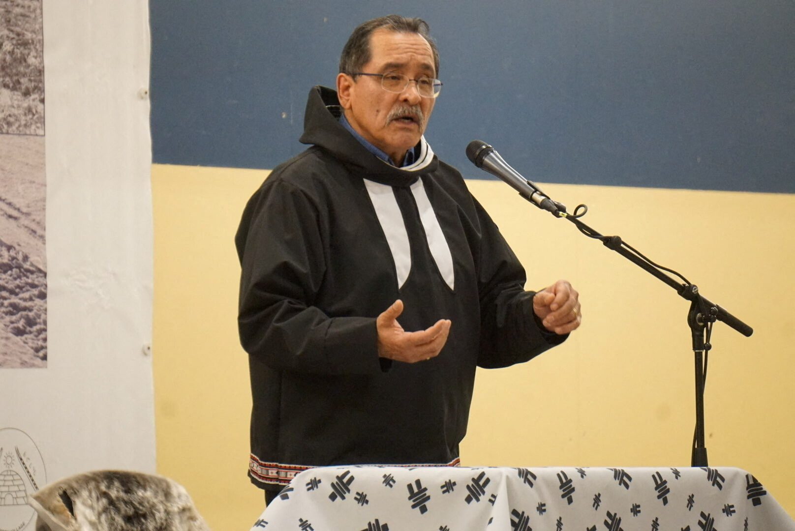 加拿大皇冠土著关系部长加里·阿南达桑加里代表政府向北魁北克的因纽特人道歉,因1950年代和1960年代对雪橇犬的大规模屠杀,地点在加拿大北魁北克的坎吉克苏亚克,2024年11月23日。加拿大政府/通过路透社提供