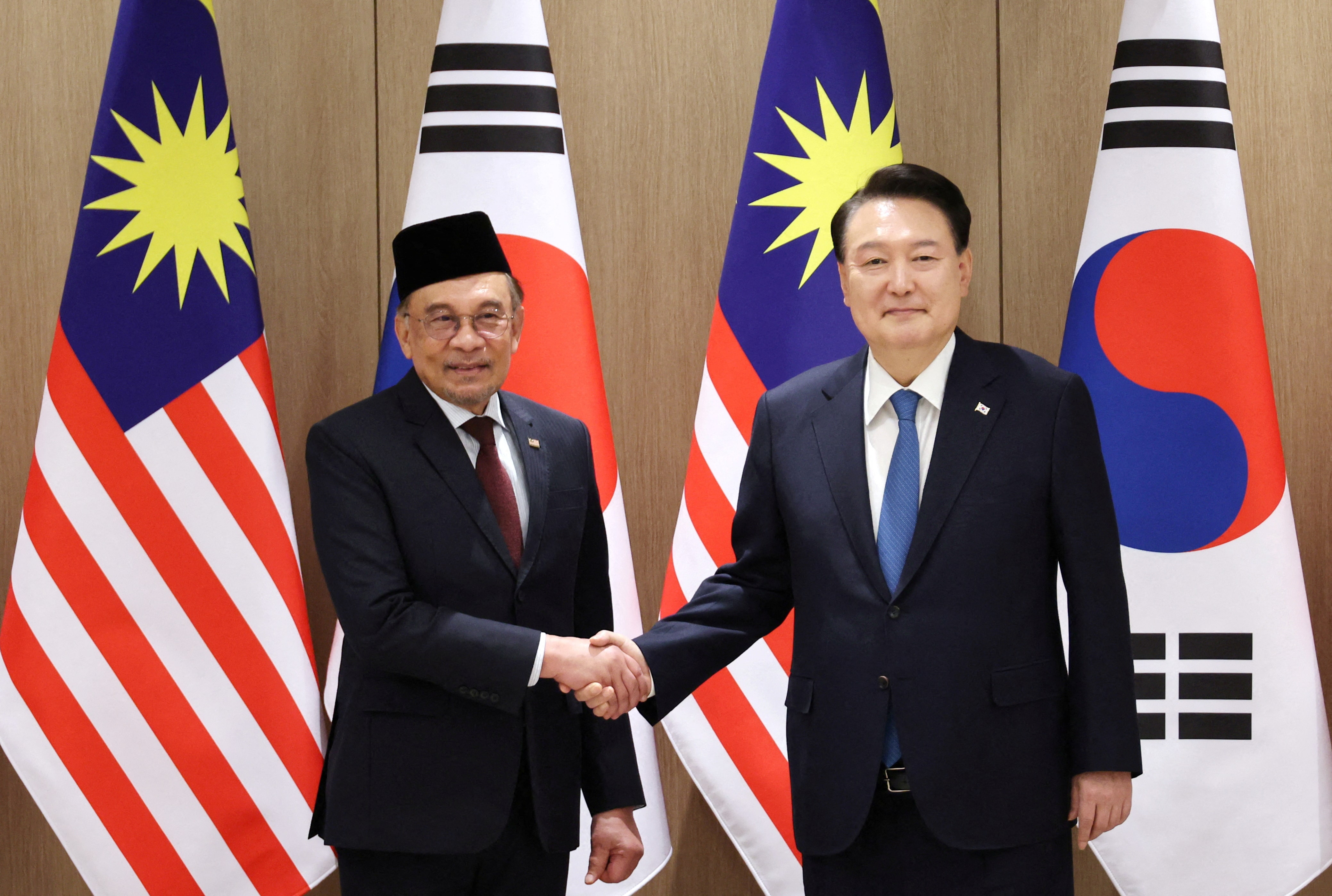 韩国的尹锡悦与马来西亚的安瓦尔达成在国防和矿产方面合作的协议 | 路透社