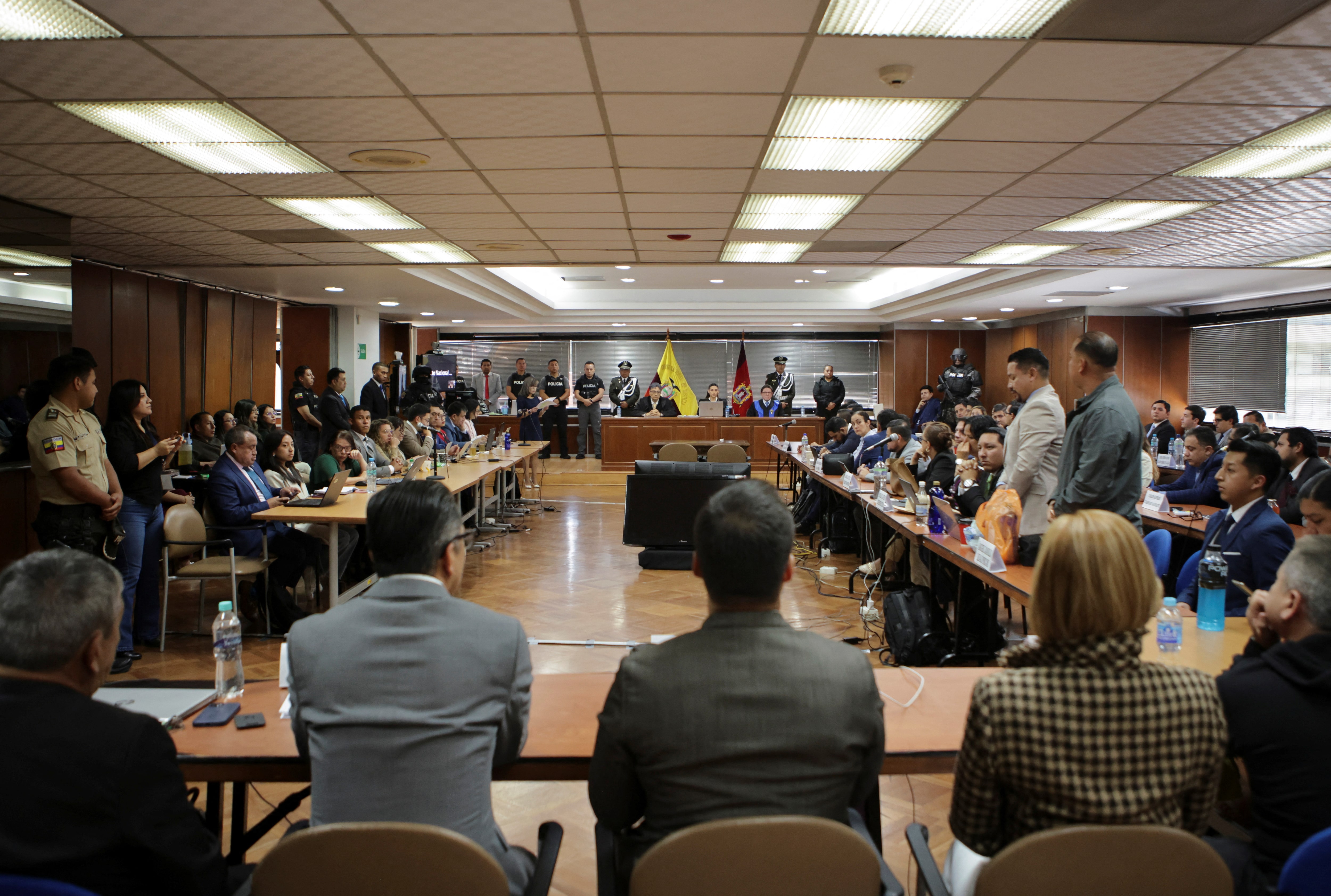 法院成员正在开会,预计将对在涉及安第斯国家司法系统的广泛“转移”有组织犯罪和毒品贩运案件中被起诉的人宣判,地点在厄瓜多尔基多,2024年11月25日。路透社/大卫·迪亚斯·杜克 基多,11月25日(路透社) - 一家厄瓜多尔法院周一对在涉及安第斯国家司法系统的广泛有组织犯罪和毒品贩运案件中的21名被告中的20名进行了定罪,判处他们40个月至10年的监禁。