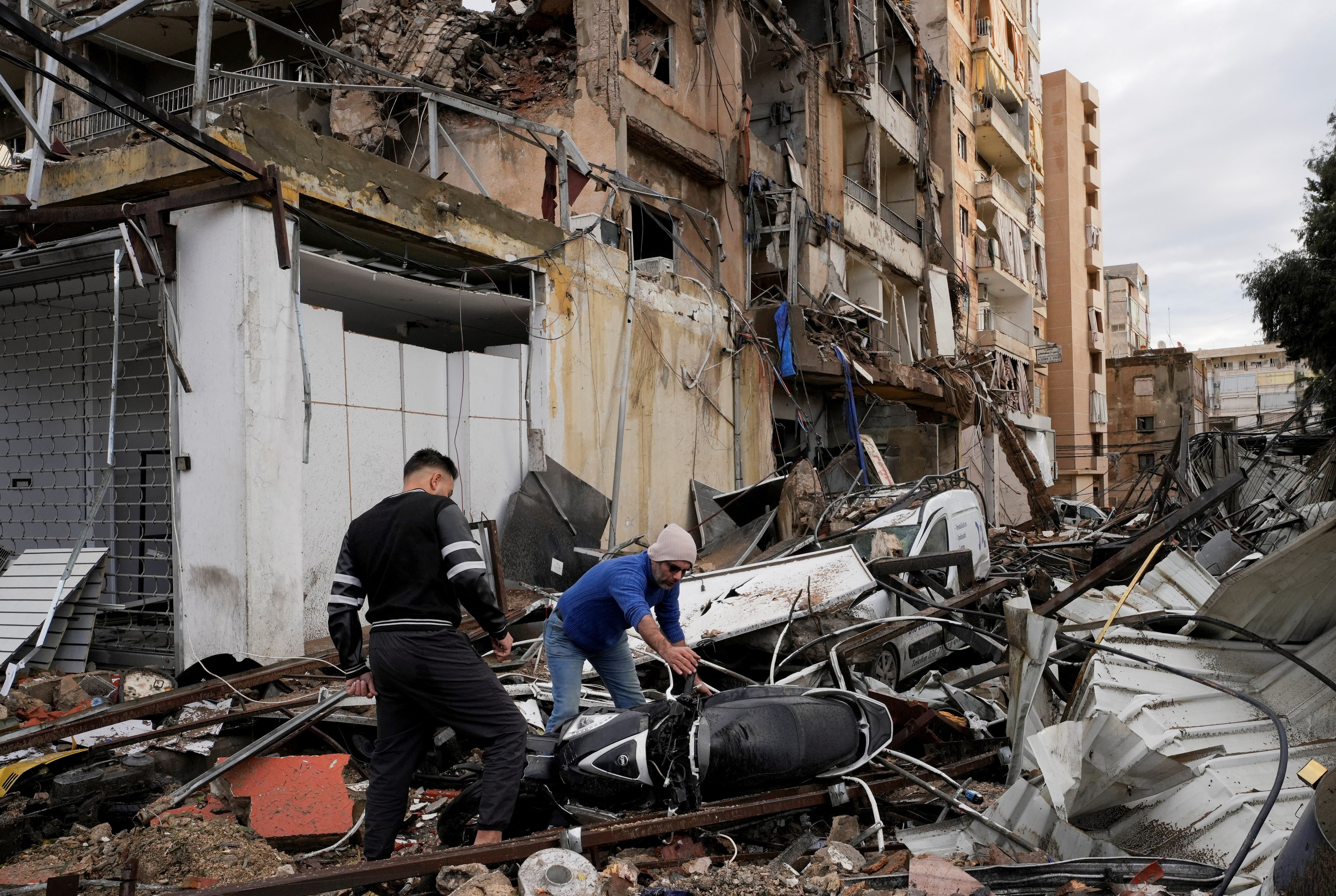 第1项,共5项 一名男子在废墟中移动滑板车,这是以色列对贝鲁特南部郊区进行空袭后的情景,正值黎巴嫩真主党与以色列军队之间的持续敌对行动,日期为2024年11月26日。路透社/穆罕默德·亚辛