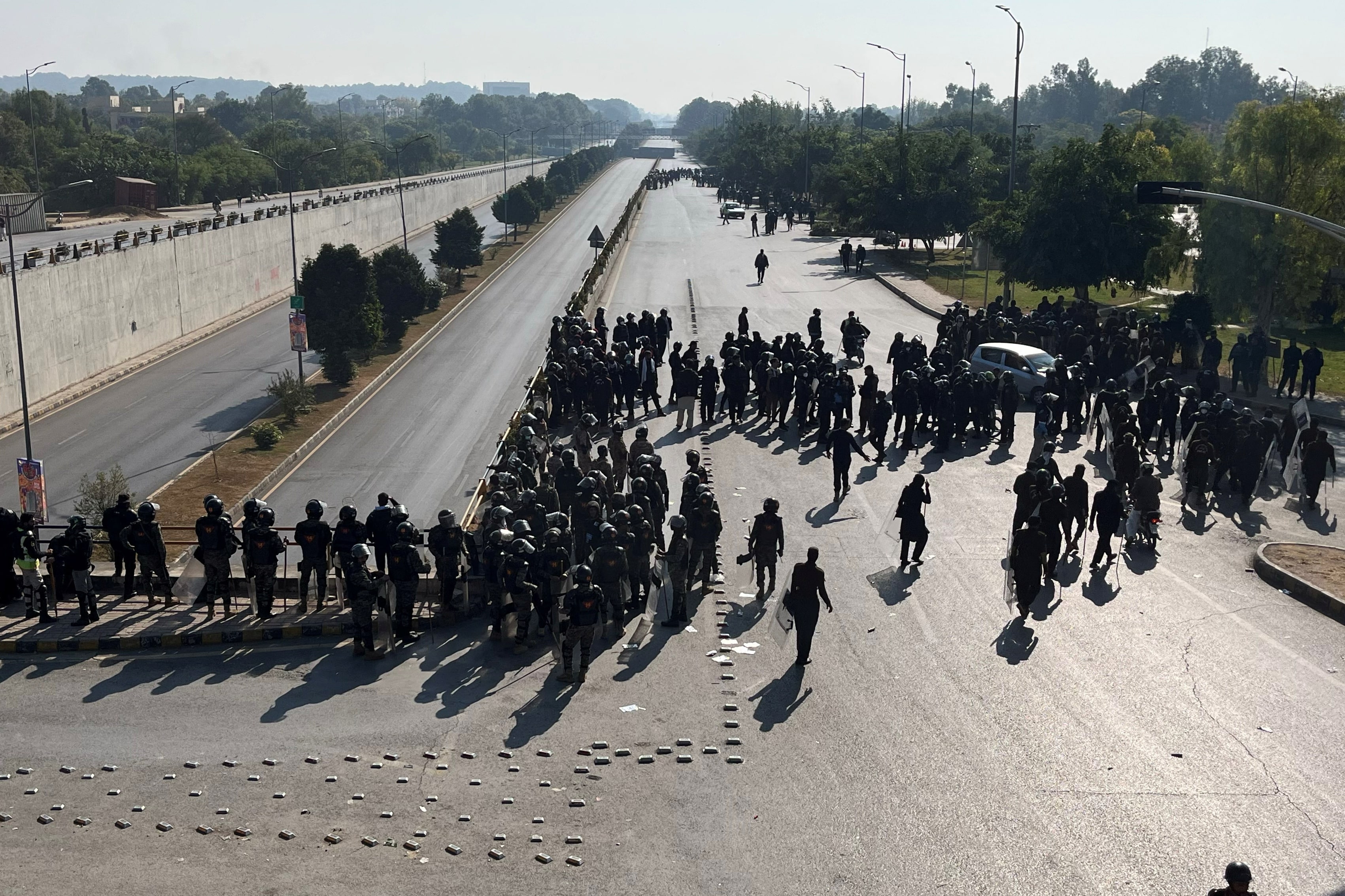 数千名支持者在周末与警察和准军事部队发生冲突,试图进入伊斯兰堡。