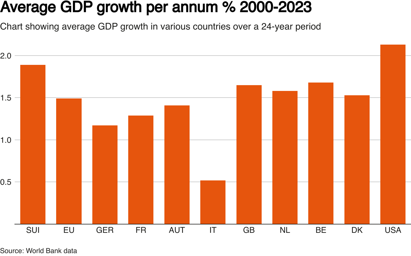 自1999年瑞士获得对欧盟单一市场的无限制准入以来,其经济增长速度超过了德国、奥地利、法国和意大利等邻国,这些邻国在之前的十年中其增长速度落后于瑞士。就业增长更快,而平均工资也上涨得更多。