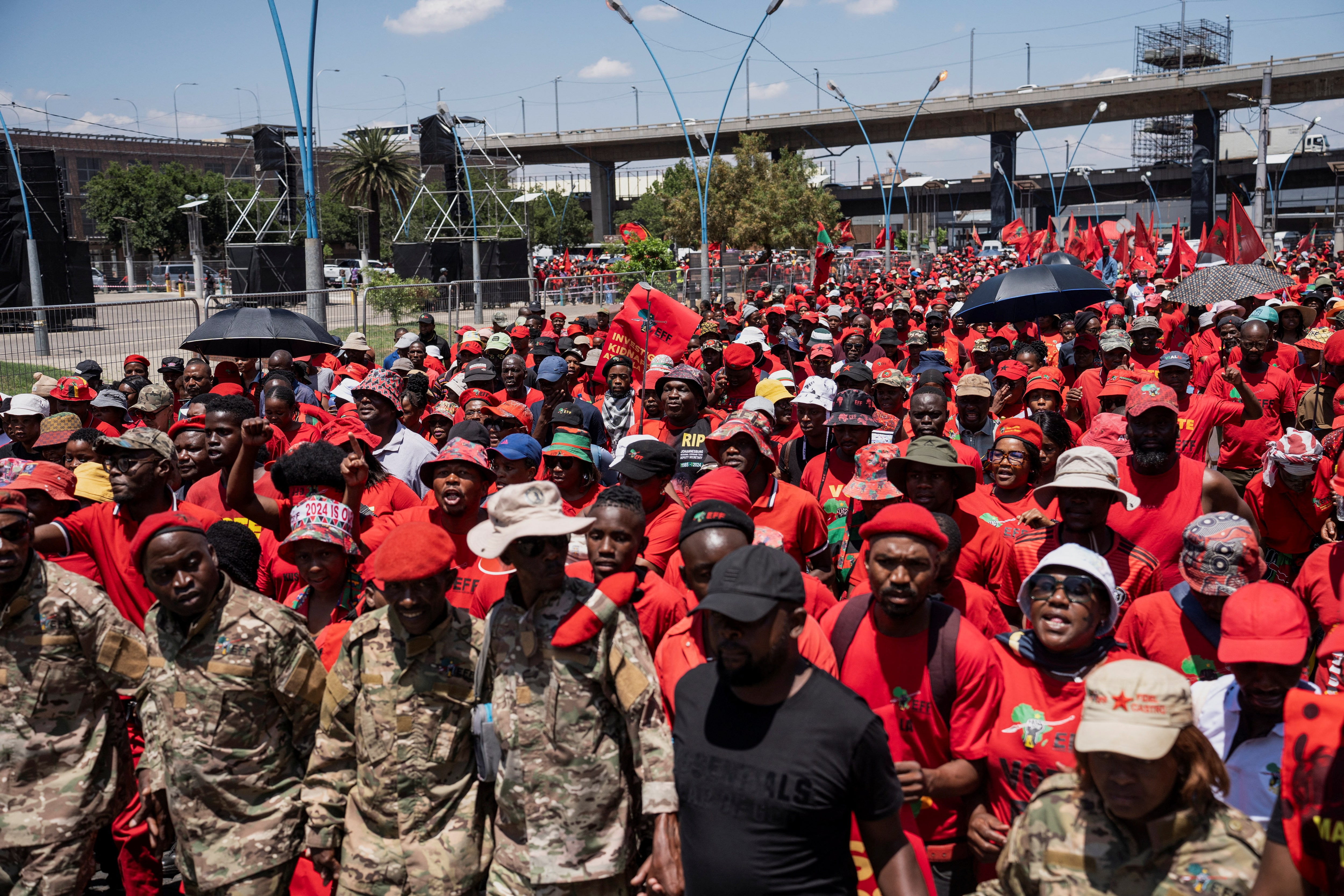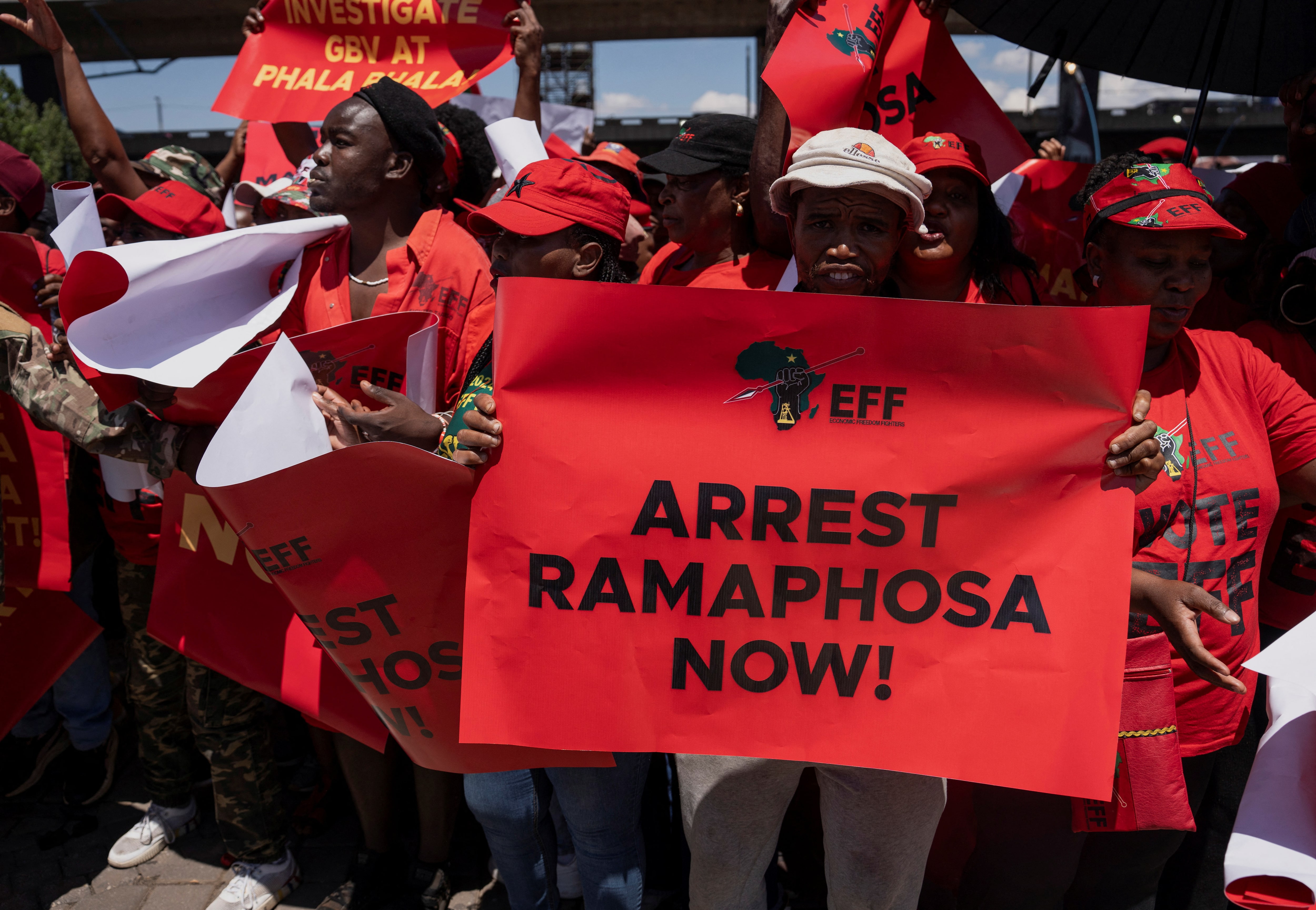经济自由斗士(EFF)的成员在街头抗议,前往宪法法院,该政党正在挑战国民议会对一份报告的拒绝,该报告可能导致对总统西里尔·拉马福萨的弹劾程序,原因是…阅读更多约翰内斯堡,11月26日(路透社) - 南非反对党经济自由斗士(EFF)周二向该国最高法院提起诉讼,试图恢复对总统西里尔·拉马福萨的弹劾程序,原因是当地媒体称之为“农场门”的丑闻。