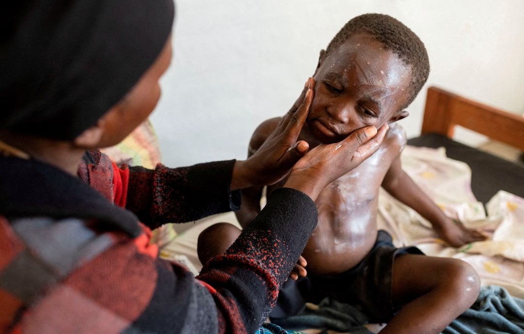 项目 1 共 3 Furaha Elisabeth 在刚果民主共和国北基伍省戈马附近的穆尼吉卫生中心为她的孩子 Sagesse Hakizimana 涂抹治疗 Mpox 的药物,Mpox 是一种由 Mpox 病毒引起的传染病,导致疼痛的皮疹、淋巴结肿大和发热,时间是 2024 年 8 月 19 日。路透社/阿莱特·巴希齐/档案照片