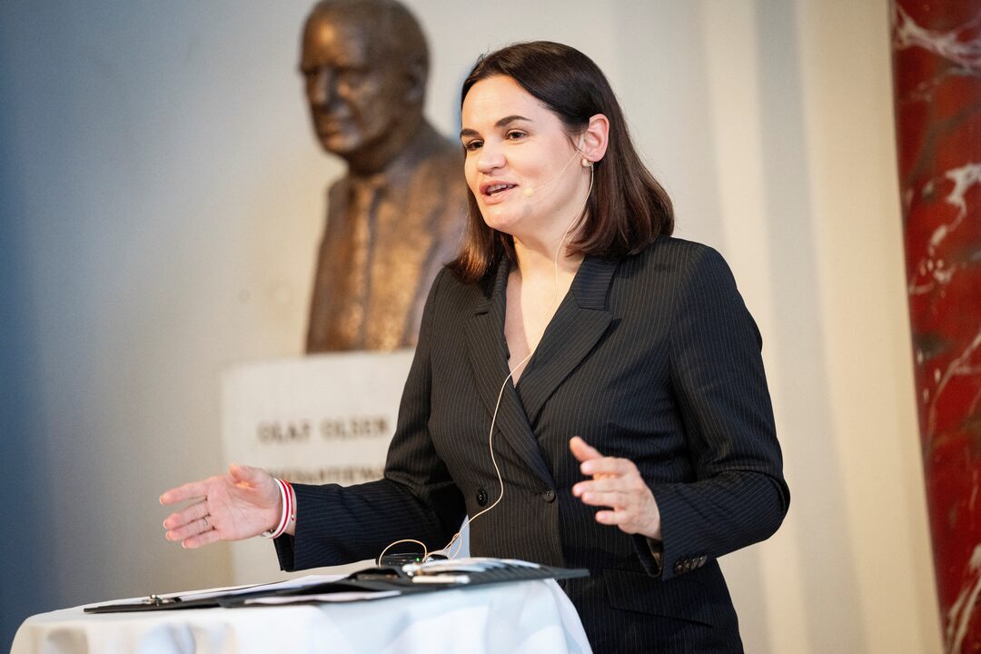 第1项,共3项 斯维特兰娜·齐哈诺夫斯卡娅,这位流亡的白俄罗斯反对派领袖在2020年大选中与总统亚历山大·卢卡申科对抗,在2024年11月26日于加拿大安大略省渥太华接受路透社采访,谈及白俄罗斯2025年大选。路透社/喀雅·索·乌