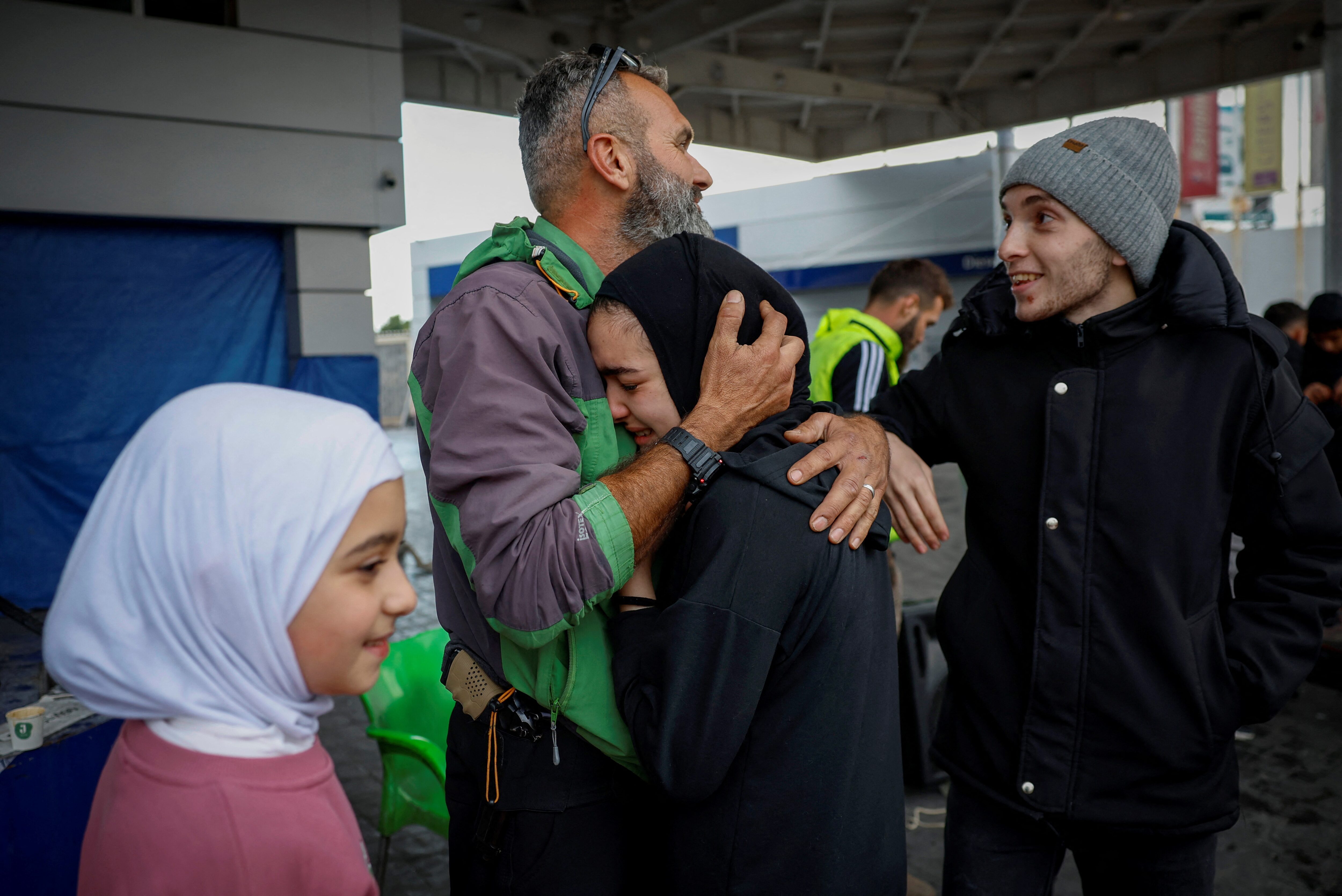 第1项,共12项,穆罕默德·斯利姆在与女儿梅尼萨·斯利姆团聚时拥抱她,穆罕默德表示,在以色列与真主党之间停火后,两人相聚,时隔两个月。2024年11月27日。路透社/阿德南·阿比迪