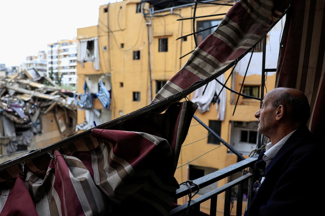 流离失所的黎巴嫩人Zahi Hijazi站在他在贝鲁特南郊的受损公寓阳台上,他曾在停火生效后逃离,黎巴嫩2024年11月27日。路透社/Thaier al-Sudani 今日图片精选## ‘失去的就是失去’