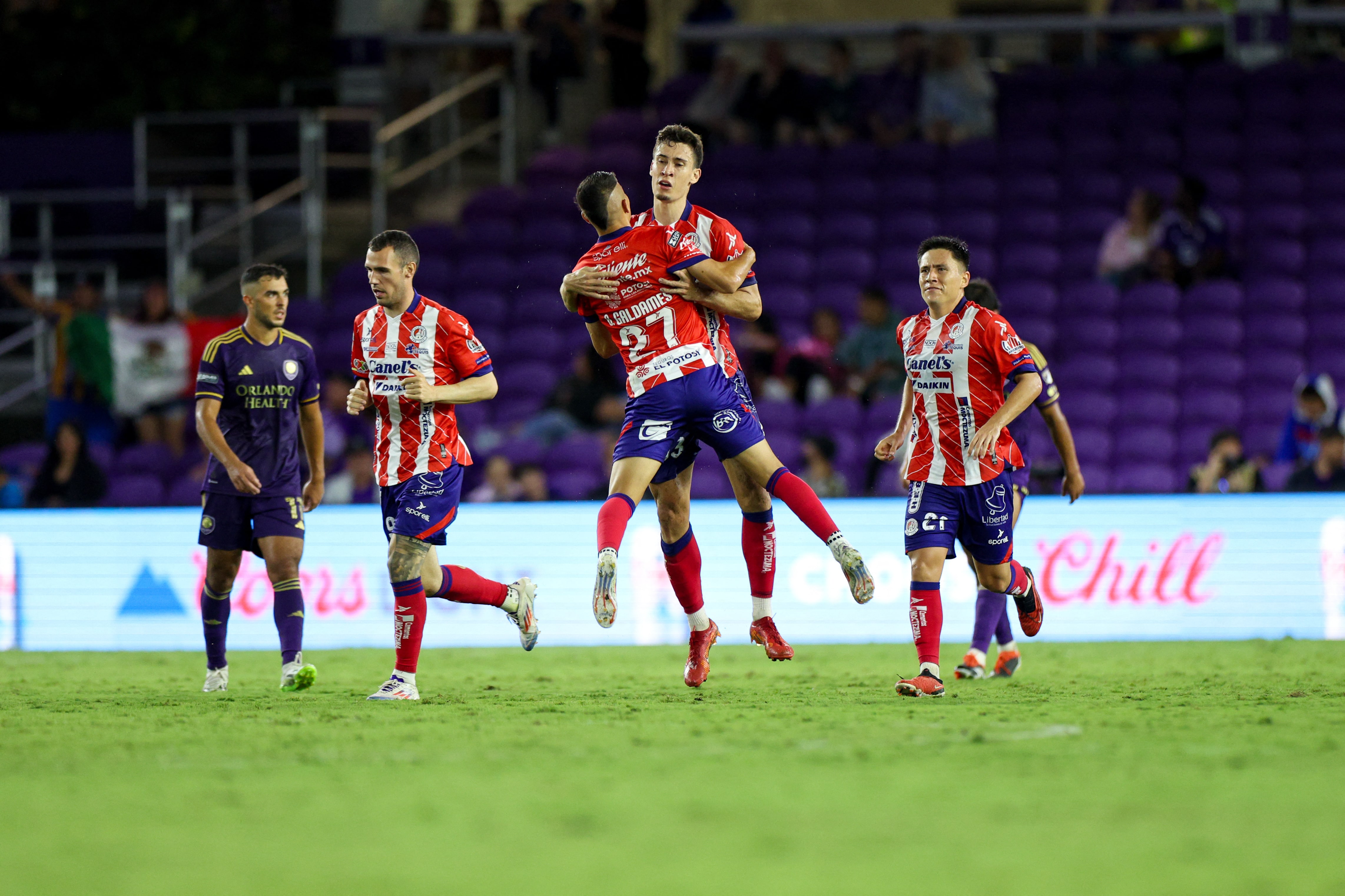 档案照片,圣路易斯竞技队的球员在进球后庆祝。INTER&CO体育场,佛罗里达州奥兰多,美国。2024年8月4日。必须注明来源 USA TODAY/Nathan Ray Seebeck 墨西哥城,11月28日(路透社) - 圣路易斯竞技队在墨西哥足球联赛的阿佩尔图拉锦标赛四分之一决赛首回合中以3-0大胜老虎队,迈出了进入半决赛的重要一步。