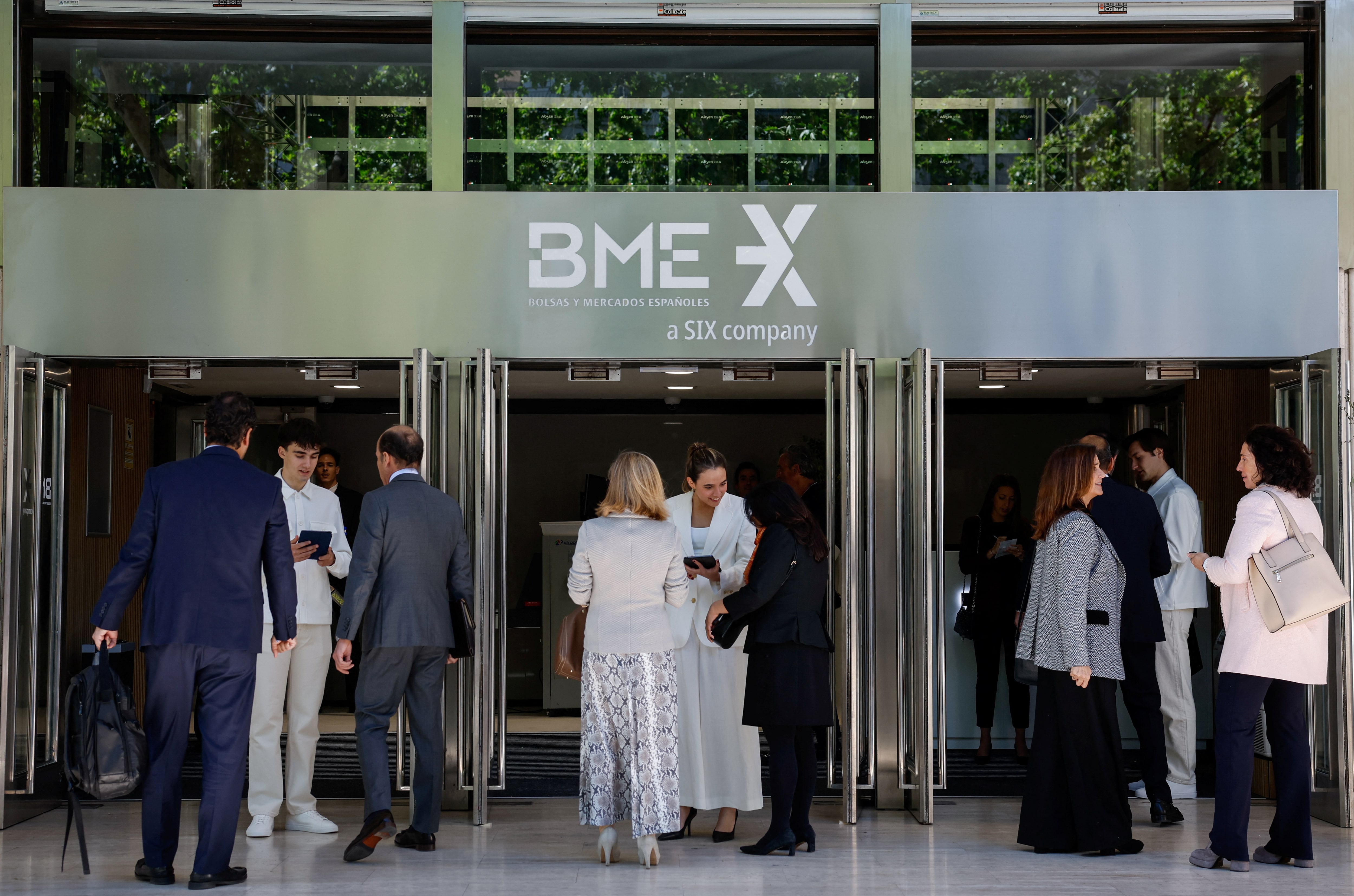 档案照片。人们在西班牙加泰罗尼亚巴塞罗那证券交易所的入口前停留。2024年5月3日。路透社/阿尔伯特·盖亚11月29日(路透社) - IBEX 35(.IBEX)在周五开盘时未能维持11600点的心理关口,并准备以新的月度下降结束11月,面临地缘政治、货币和经济的不确定性。由于感恩节的前一天,华尔街的假期影响了交易日,预计周五美国市场的半个交易时段将限制交易量。