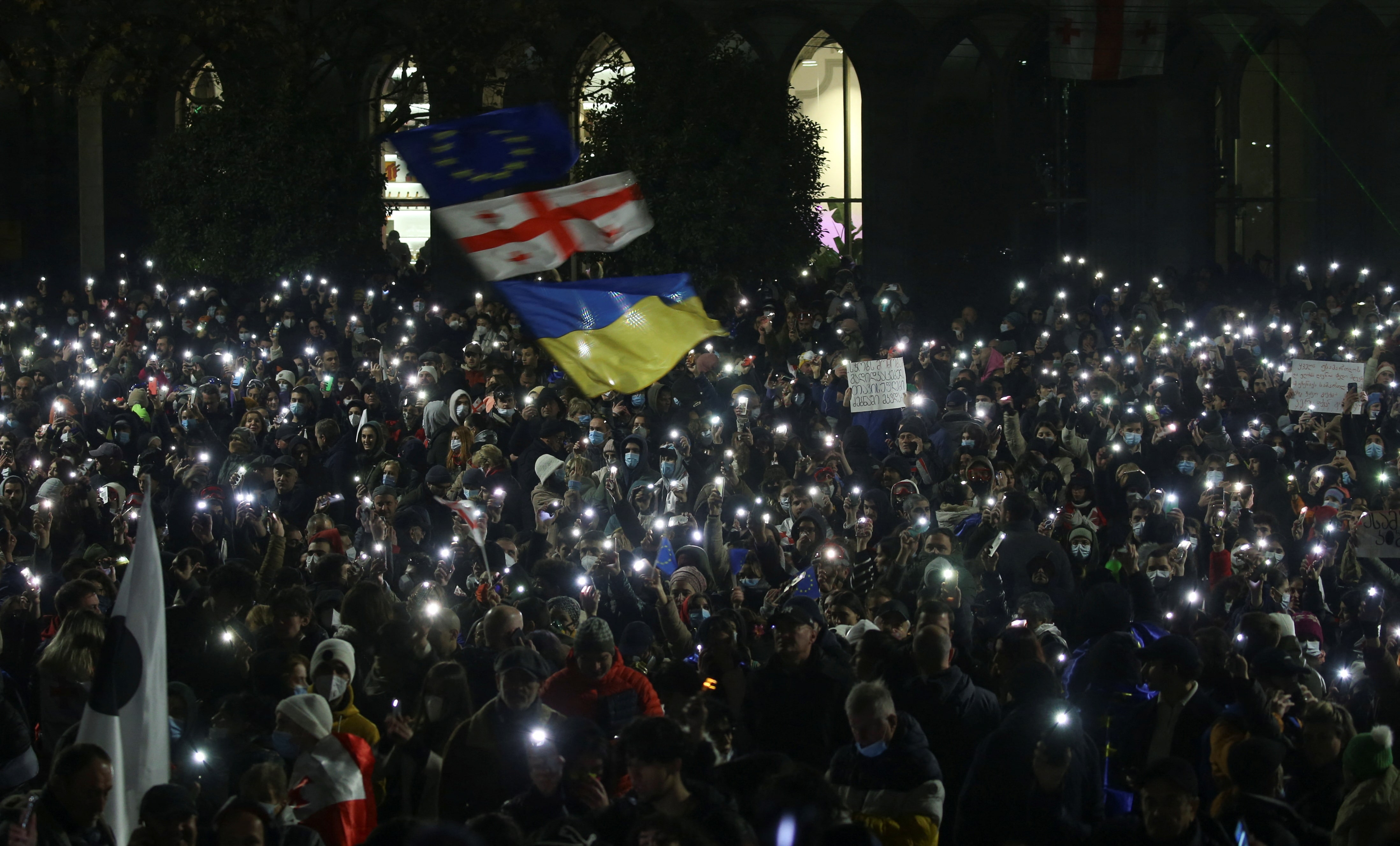 警方与支持欧盟的格鲁吉亚人在因入盟冻结而举行的抗议活动中第二夜发生冲突 | 路透社