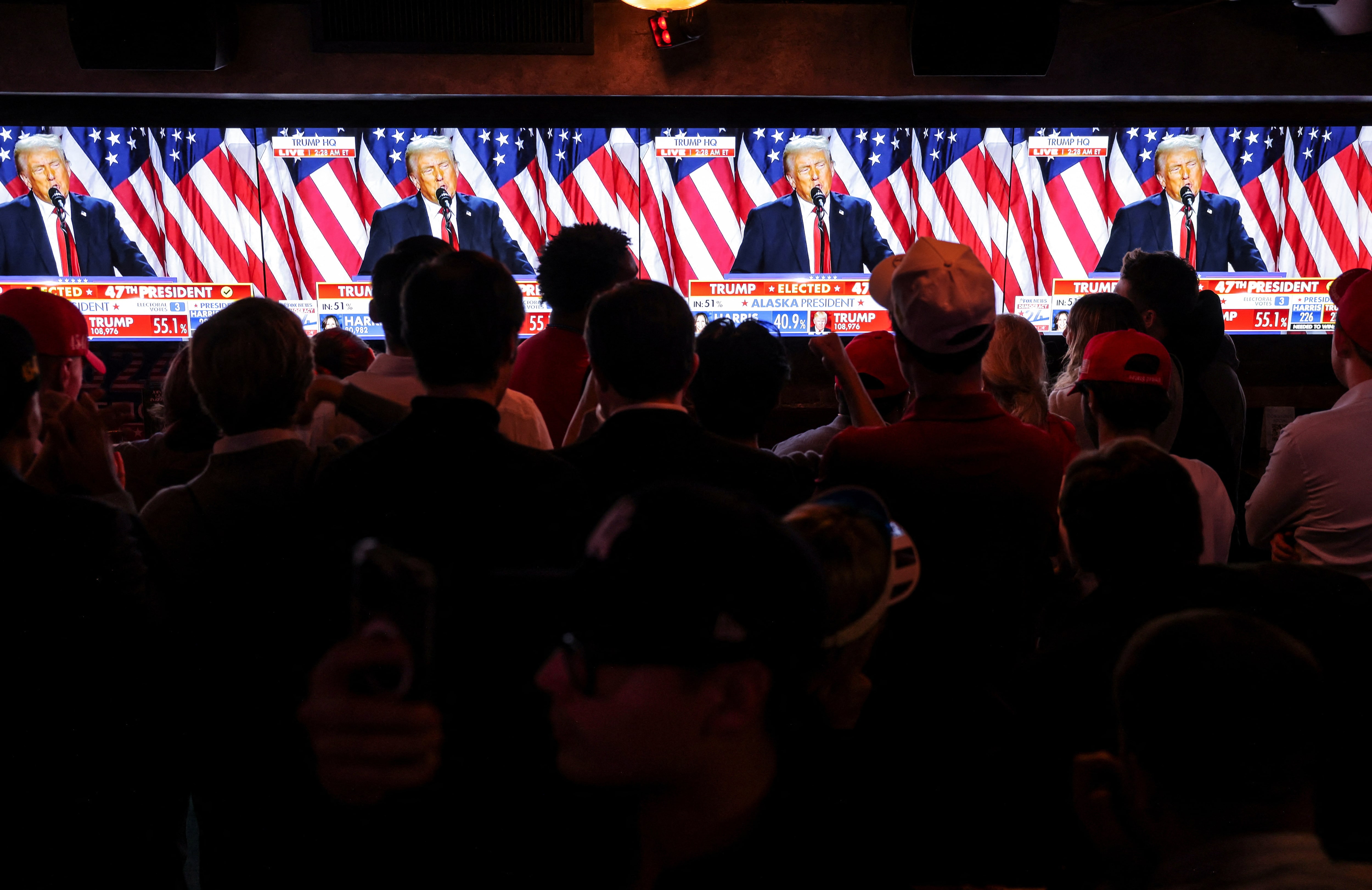 共和党总统候选人、前美国总统唐纳德·特朗普的支持者们观看着显示特朗普在棕榈滩县会议中心演讲的屏幕,他们在2024年美国总统选举期间参加纽约年轻共和党俱乐部的观赛派对,地点位于美国纽约市曼哈顿,时间为2024年11月6日….阅读更多12月2日(路透社)- 自从赢得2024年选举以来,当选总统唐纳德·特朗普对他关于选民欺诈的虚假声明保持沉默。但他所引发的选举否认运动并没有消失——并且在美国某些地区似乎正在增强。
