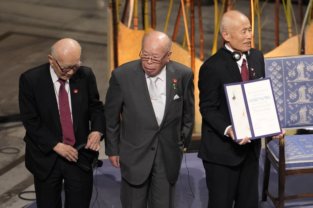 诺贝尔委员会主席约根·瓦特内·弗里德内斯和2024年诺贝尔和平奖获得者日本被爆者团体的代表田中照美、田中重光和三牧敏之出席2024年12月10日在挪威奥斯陆市政厅举行的诺贝尔和平奖颁奖典礼。 NTB/海科·扬格/通过路透社奥斯陆,12月10日(路透社) - 年轻人必须为无核世界而奋斗,考虑到如今的武器比过去强大得多,今年的诺贝尔和平奖获得者,原子弹幸存者团体日本被爆者团体在周二表示。日本被爆者团体一个由1945年日本城市广岛和长崎核爆炸幸存者组成的草根运动,正在利用证人证词为一个无核武器的世界而奋斗。日本原子弹幸存者的平均年龄现在是85岁,该组织的共同主席田中照美在接受奖项时表示,这个颁奖典礼在奥斯陆市政厅举行,挪威国王哈拉尔、王后索尼娅和其他贵宾出席。92岁的田中对观众说:“你们中的任何一个人随时都可能成为受害者或施害者。”