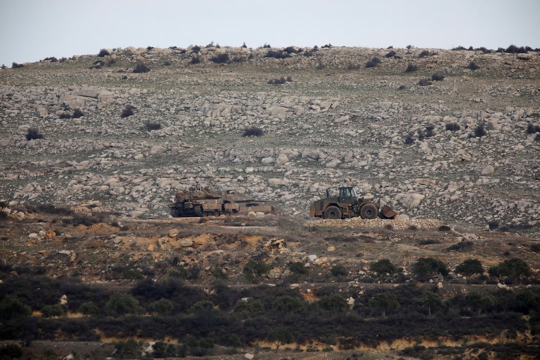 以色列军队在叙利亚靠近马吉达尔·沙姆斯的边境地区行动,视角来自以色列占领的戈兰高地,2024年12月10日。路透社/希尔·托雷姆