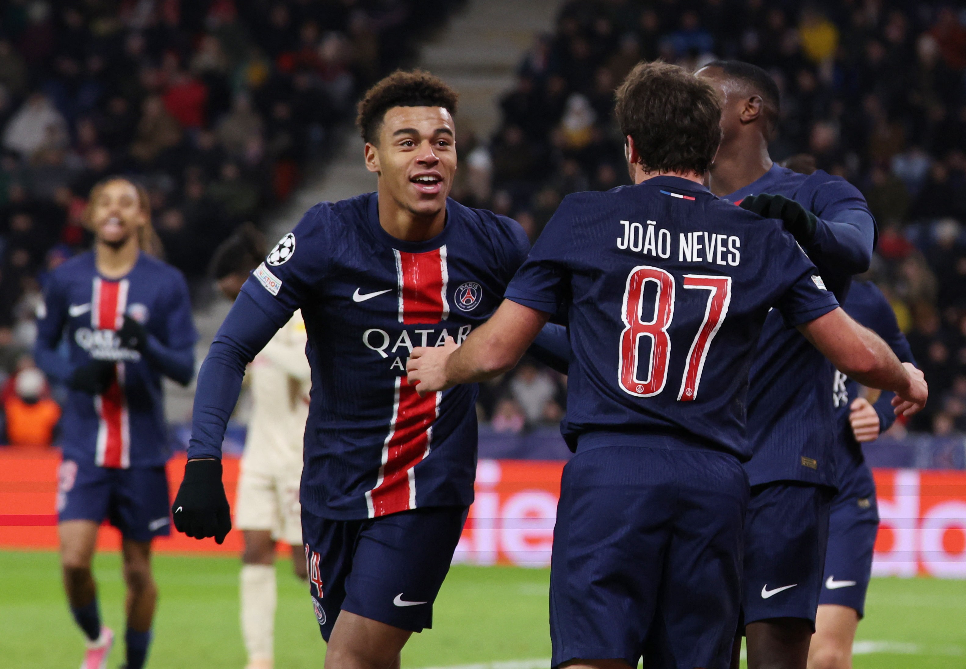 迪泽瑞·杜伊,巴黎球员,在2024年12月10日的欧洲冠军联赛中庆祝对萨尔茨堡的第三个进球。摄影:金塔尔·卡尔帕维斯尤特 - 路透社萨尔茨堡(奥地利)12月10日(阿拉伯路透社体育服务) - 冈萨洛·拉莫斯打入了一粒精彩的进球,努诺·门德斯又添一球,随后迪泽瑞·杜伊在比赛结束前进球,帮助巴黎圣日耳曼在周二以3-0战胜红牛萨尔茨堡,取得了在欧洲冠军联赛中的重要胜利,晋级到附加赛名额。