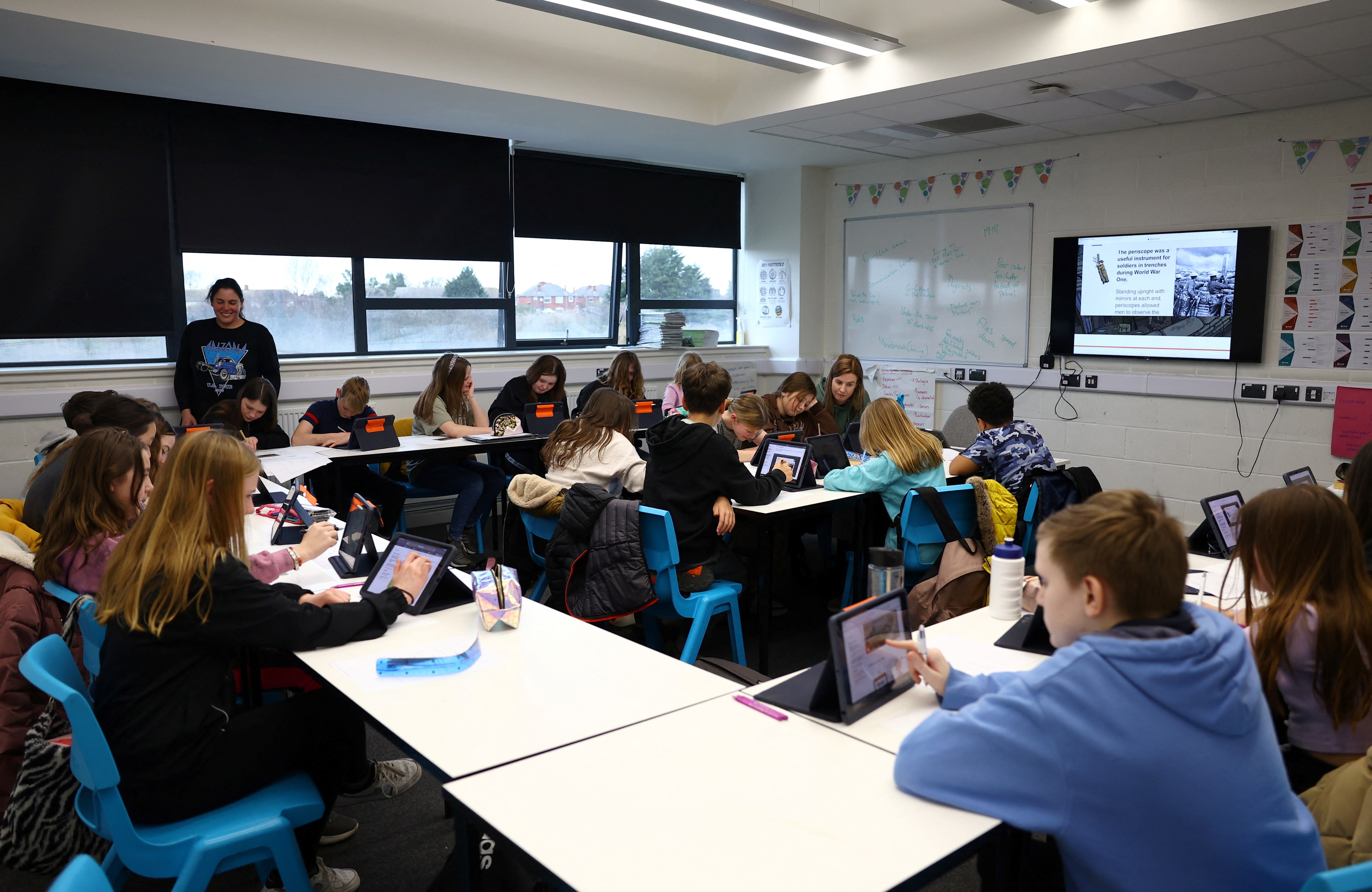 学生在英国唐卡斯特的XP东高中上课,2023年2月20日。路透社/莫莉·达林顿/档案照片12月11日(路透社)- 英国竞争监管机构周三表示,已对与改善学校建筑条件的关键政府基金相关的涉嫌串标行为展开调查。
