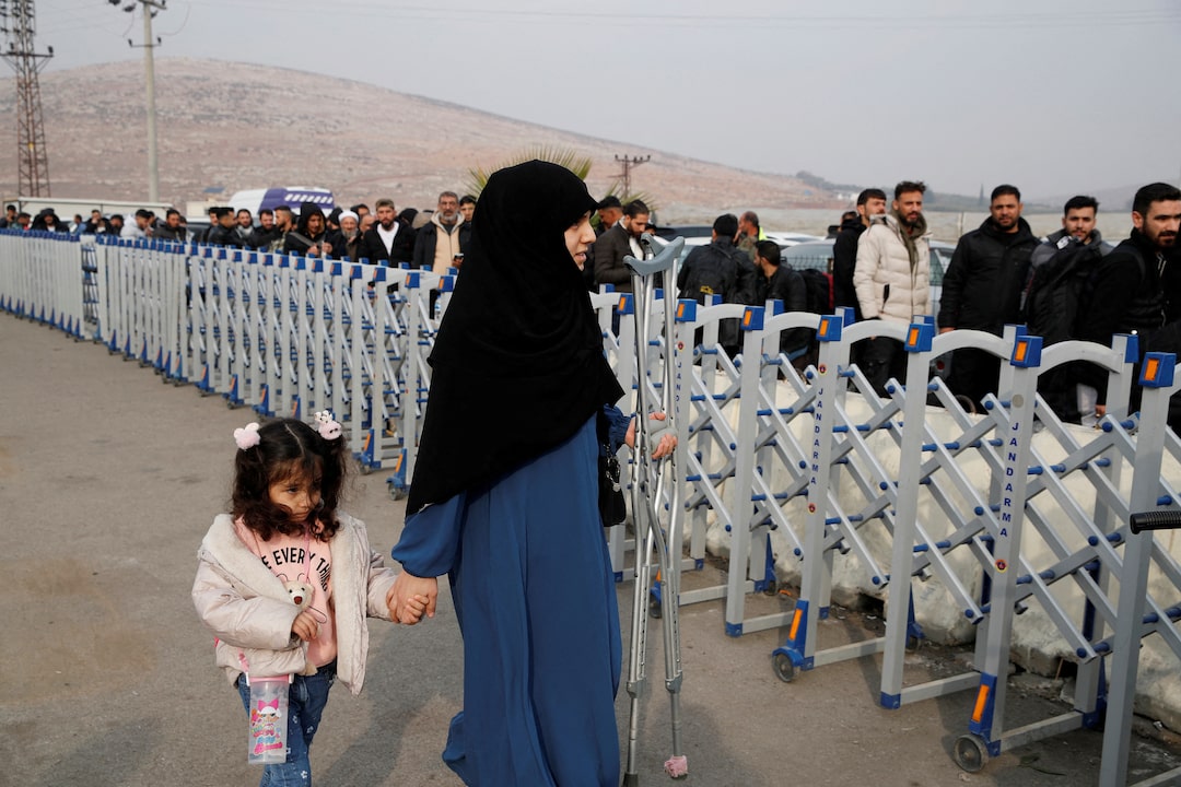 5名叙利亚移民在土耳其哈塔伊省的Cilvegozu边境口岸等待进入叙利亚,此前叙利亚反叛者推翻了总统巴沙尔·阿萨德,2024年12月11日。路透社/迪拉拉·森卡亚