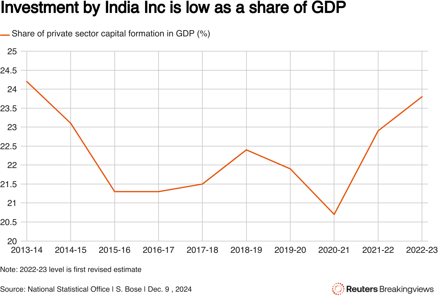 过去几十年的高飞者们正在低调行事。阿尼尔·阿加瓦尔的金属巨头维丹塔(VDAN.NS)在寻找半导体合资企业的技术合作伙伴时遇到了困难;鲁伊亚家族支持的埃萨尔集团正在缓慢增加其投资,其中一些是在海外。总体而言,私人投资在GDP中的份额低于2014年的约24%。在这里,阿达尼的动物精神对莫迪总理的政府来说既珍贵又成问题。