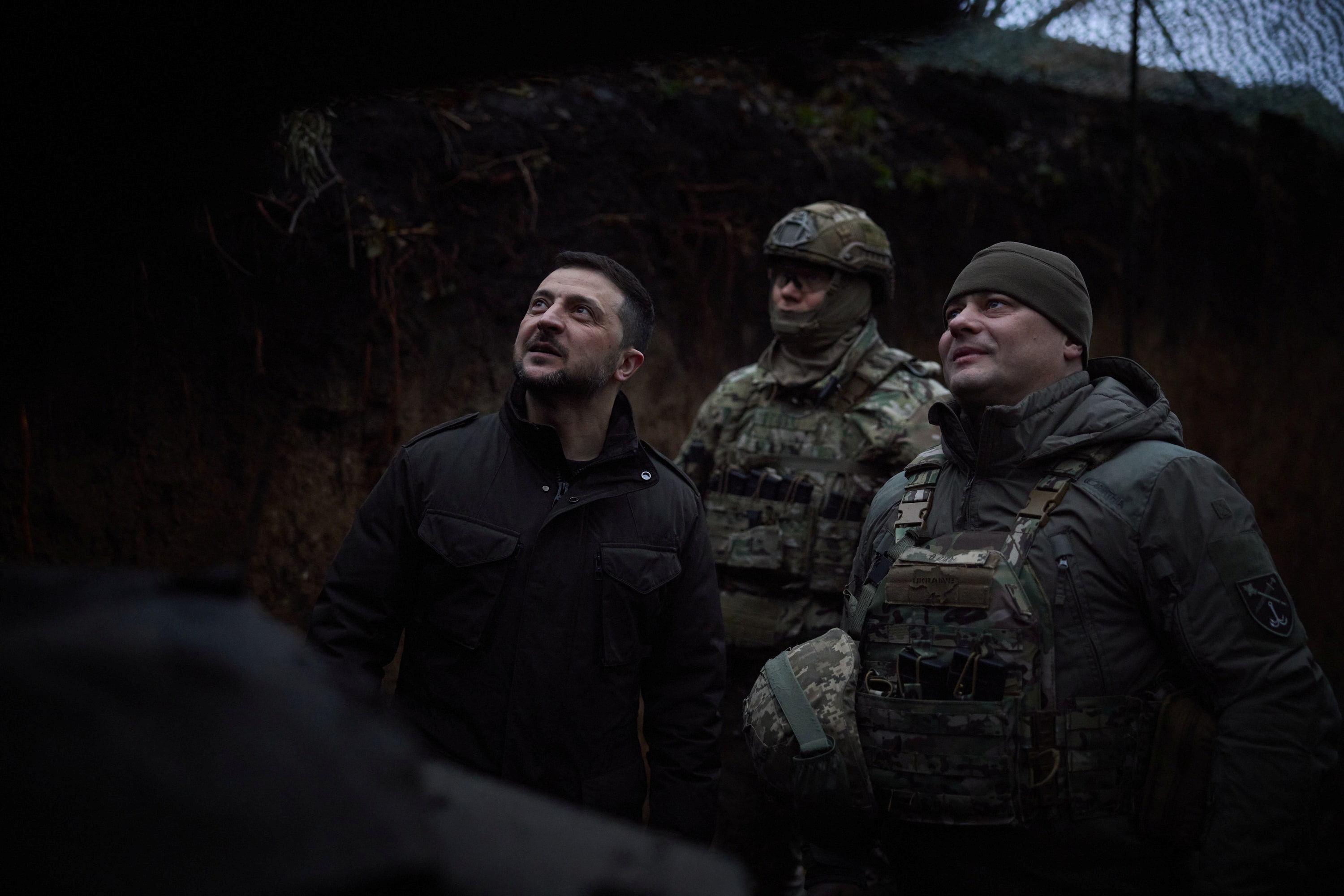 乌克兰泽伦斯基访问东南前线的炮兵部队 | 路透社