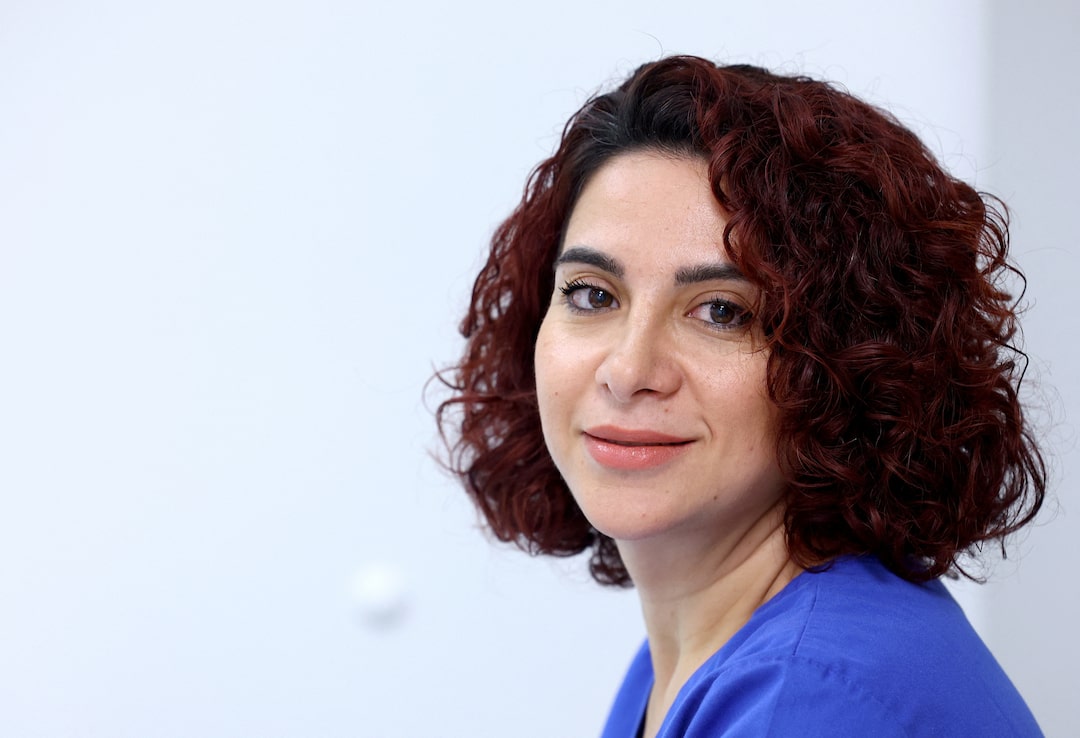叙利亚妇科医生桑迪·伊萨,36岁,在德国柏林的一家诊所与超声波设备合影,2024年12月12日。路透社/莉西·尼斯纳