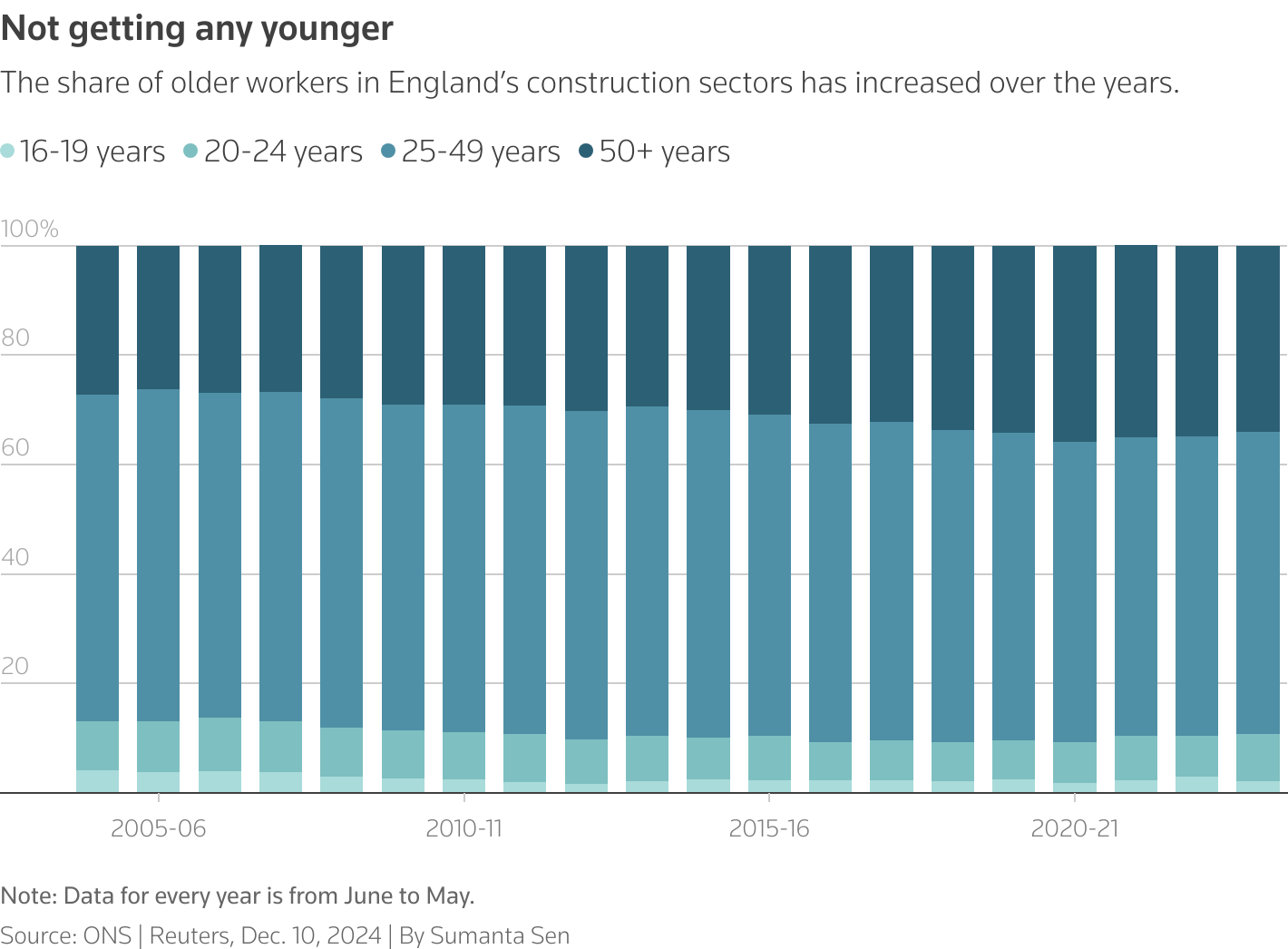 与许多其他国家一样,其建筑行业还必须应对许多接近退休年龄的熟练工人。建筑产品协会预测,该行业预计在未来10到15年内将失去50万名退休工人,占总劳动力的约25%。
