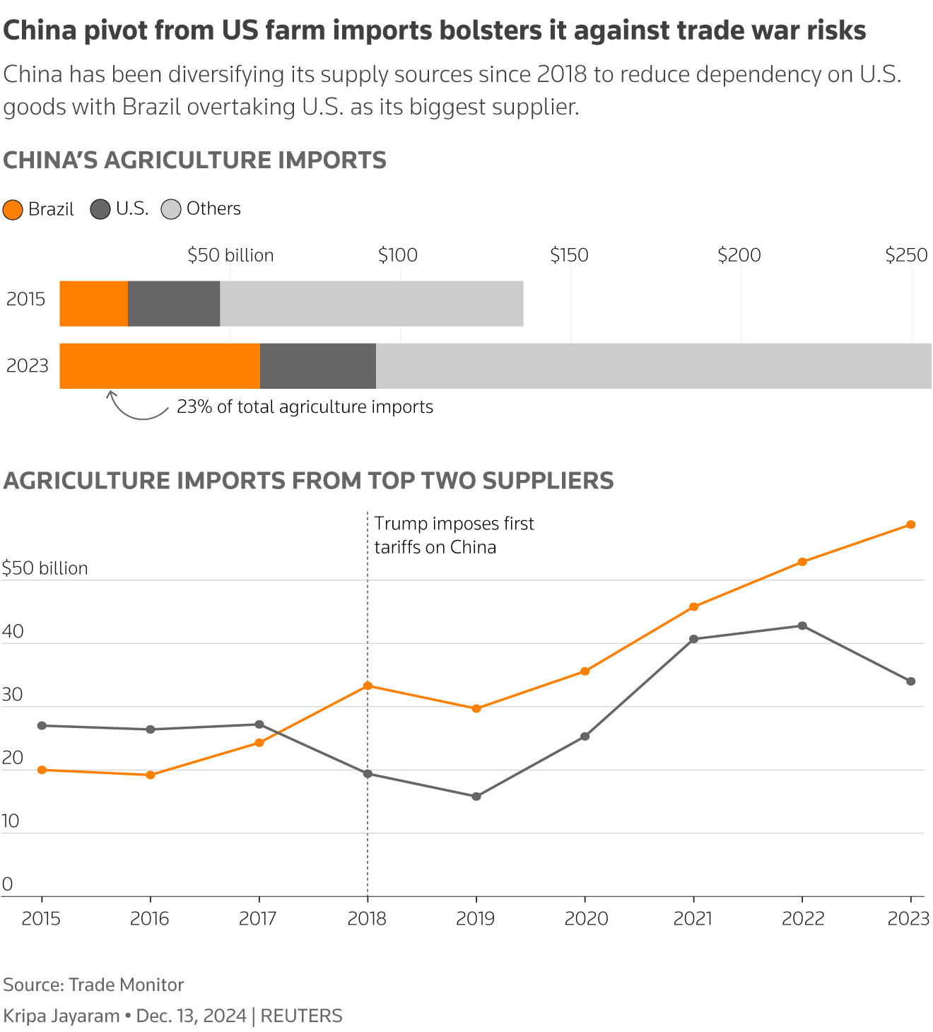 借鉴特朗普第一任期内上次贸易战的教训,中国正寻求积累谈判筹码,以便与新的美国政府就双边关系中的争议方面展开谈判,包括贸易和投资,以及科技。它还担心额外关税对其已经脆弱经济的有害影响。本周,中国对美国芯片巨头英伟达(NVDA.O)发起了调查,声称其涉嫌违反反垄断法,这紧随其对美国出口稀有矿物的禁令之后。汇丰银行首席亚洲经济学家弗雷德·诺伊曼表示:“我们必须将其视为可能最终转变为与美国谈判的开盘报价,而不仅仅是征收关税,大家就此离开。”