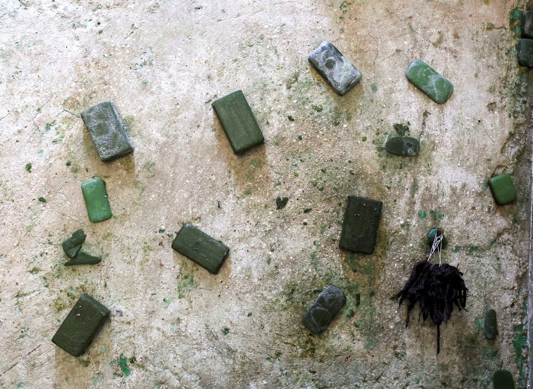 地板上满是瓦砾和被丢弃的衣物。在一个囚室里,仍然铺着一排毯子,囚犯们曾在这里睡觉。