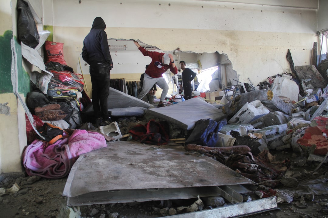 5名巴勒斯坦人在加沙市以色列对一所庇护流离失所者的学校的袭击现场进行检查,时间为2024年12月14日。路透社/马哈茂德·伊萨