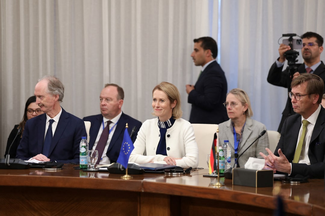 布林肯、联合国叙利亚特使盖尔·佩德森和欧盟外交政策首席卡贾·卡拉斯、菲丹以及约旦、沙特阿拉伯、伊拉克、黎巴嫩、埃及、阿联酋、巴林和卡塔尔的外交部长们在约旦政府的招待所围坐在一张圆桌旁。桌上没有叙利亚代表。