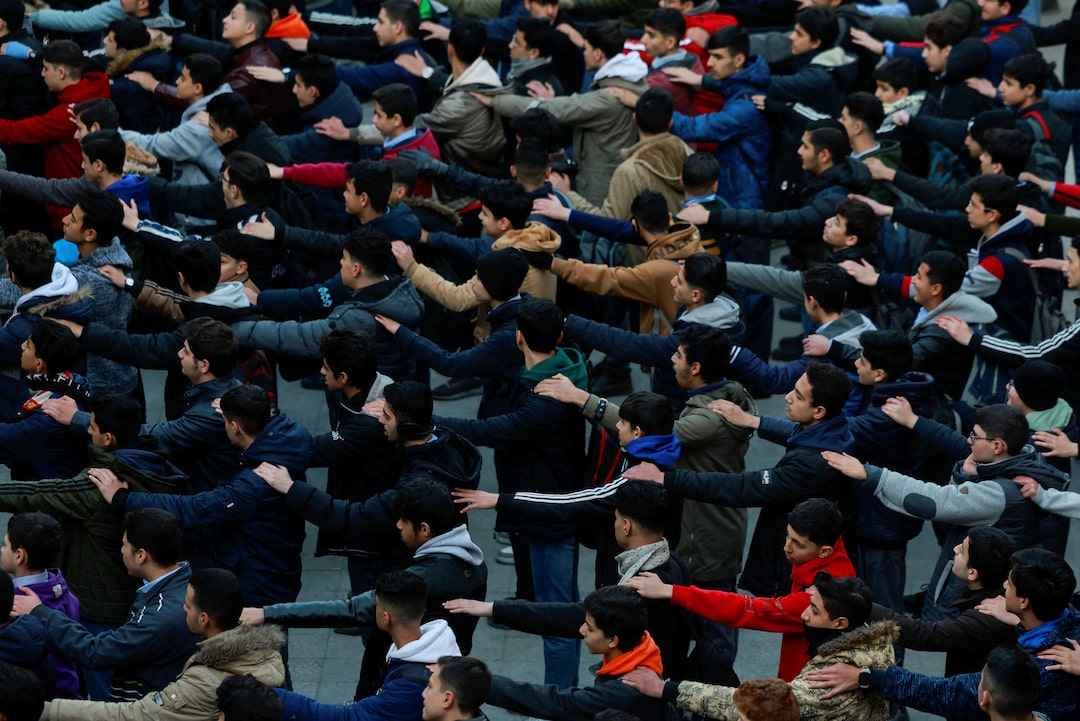 学生萨拉赫·阿尔-迪亚布说:“我很乐观,也很开心。我以前走在街上时害怕被征召入伍。到达检查站时我也很害怕。”