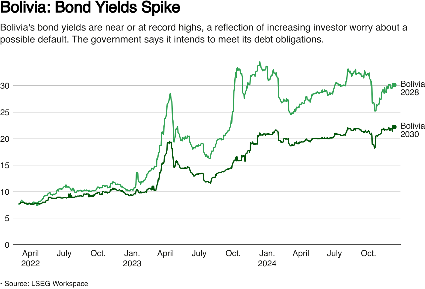 玻利维亚的债券收益率处于或接近创纪录的高位,反映出投资者对该国经济前景日益担忧。