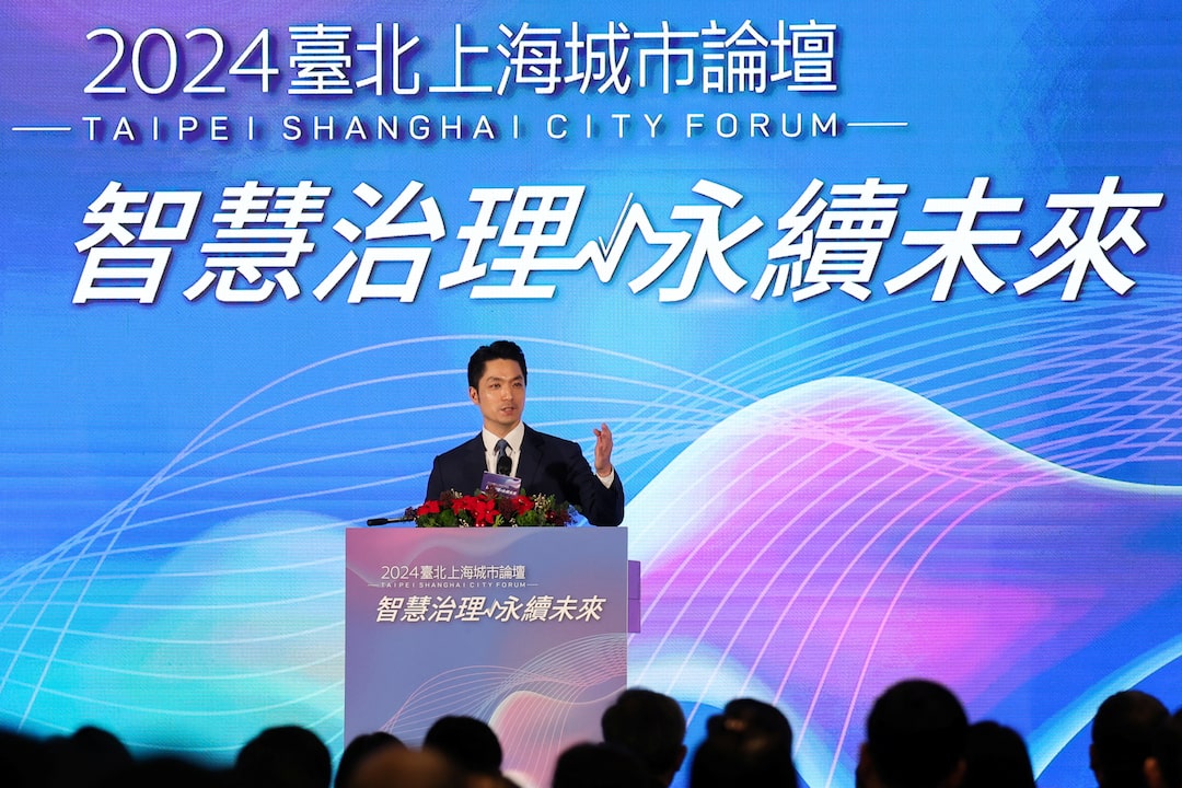 项目 1 共 3 台北市长蒋万安在2024年12月17日于台湾台北举行的年度城市论坛上发表讲话。路透社/安王
