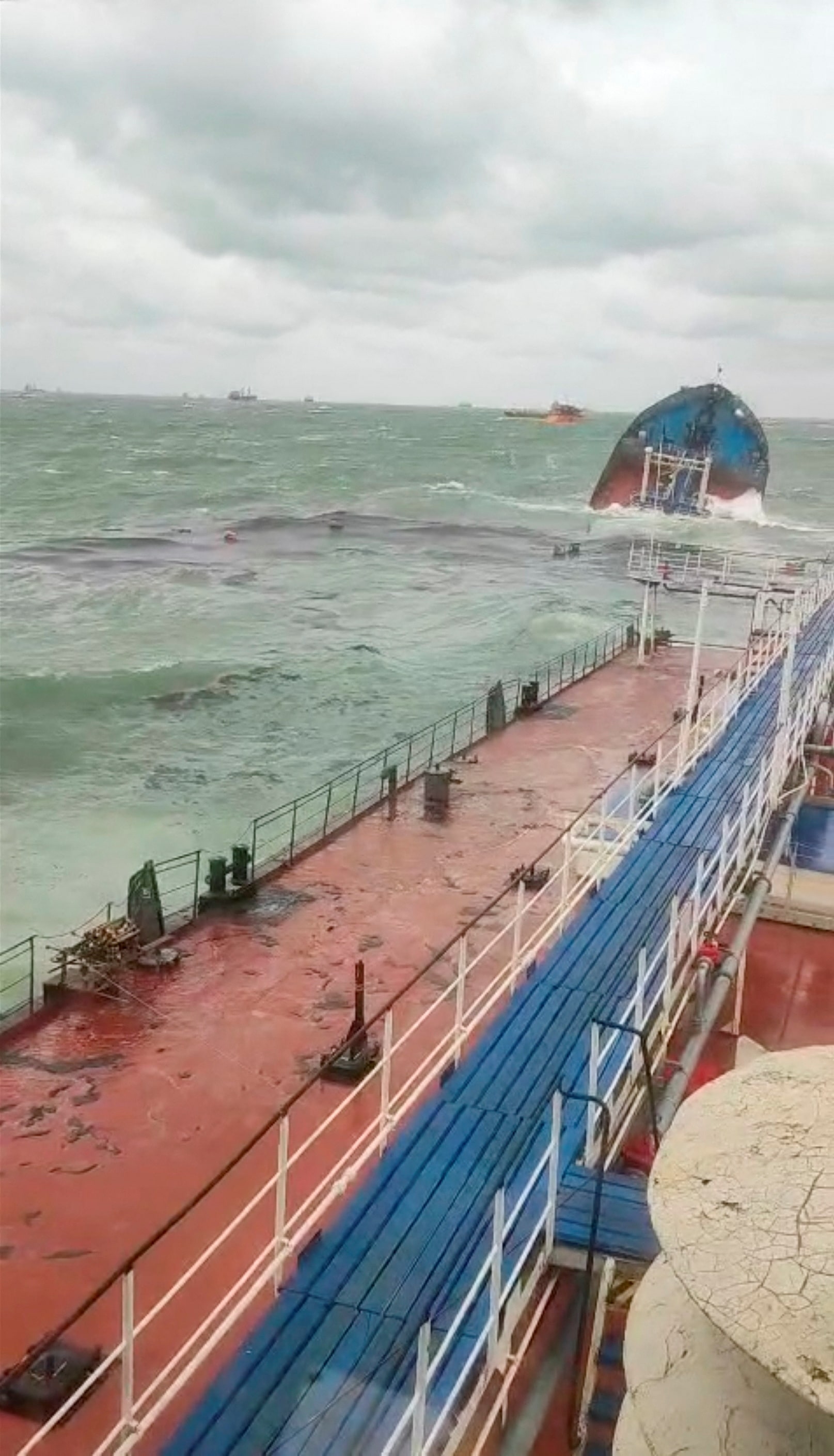 来自Volgoneft 239油轮的视角显示了船只沉没的部分,其损坏导致了在克里米亚的刻赤海峡发生石油泄漏,2024年12月15日,这段视频截图来自社交媒体。社交媒体/通过路透社/档案照片莫斯科,12月17日(路透社)- 在周末的暴风雨中,两艘油轮严重受损后,俄罗斯黑海沿岸“数十公里”处出现了泄漏的石油,当地一位州长周二表示。