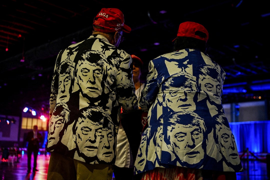 在这种情况下,她被一对穿着相配服装的情侣吸引,他们在佛罗里达州参加11月5日的选举日观赛派对,为他们选择的美国总统候选人唐纳德·特朗普加油。尽管他们背对着我们,但特朗普的面孔通过他们的夹克多次向我们探出头来。“他们选择协调他们的服装,字面上把他们的心声穿在袖子上,”奥哈雷说。“你甚至不需要看到这对情侣的脸,就知道他们对选举之夜的事件有多兴奋。”