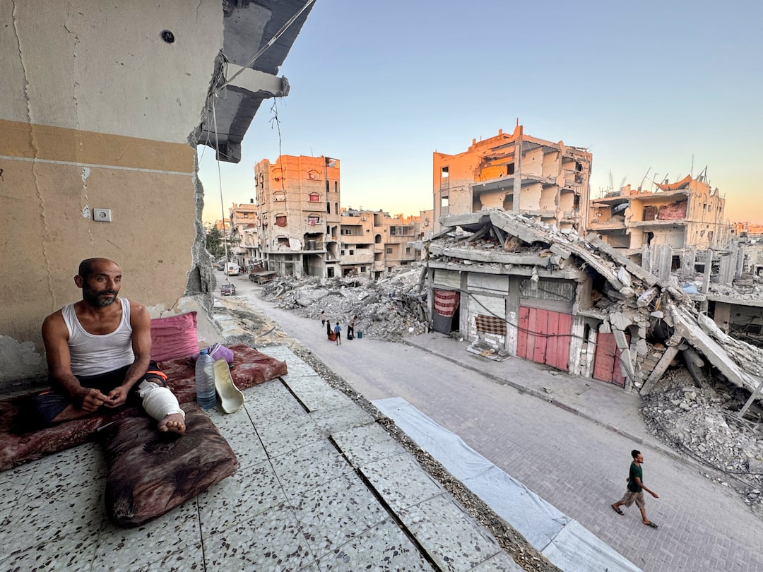 第1项,共4项 一名巴勒斯坦男孩站在以色列军事攻势中被摧毁的房屋废墟上,背景是以色列与哈马斯之间持续的冲突,地点在加沙地带南部的汗尤尼斯,2024年10月7日。路透社/穆罕默德·萨利姆/档案照片