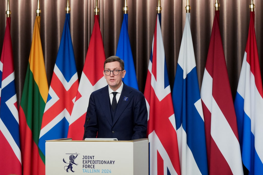 第1项,共4项 爱沙尼亚总理克里斯滕·米哈尔于2024年12月17日在爱沙尼亚塔林参加联合远征部队(JEF)峰会的新闻发布会。路透社/印茨·卡尔宁斯