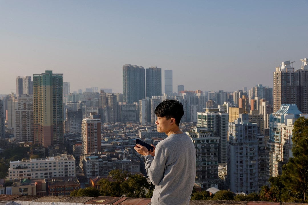 一名保安坐在中国澳门的葡京赌场前,该赌场由新濠国际控股运营,时间为2024年12月17日。路透社/泰隆·萧香港,12月18日(路透社) - 中国国家主席习近平于周三抵达澳门,以庆祝北京对这个前葡萄牙飞地统治25周年,并可能在他为期三天的访问中呼吁进一步多元化其赌场产业。