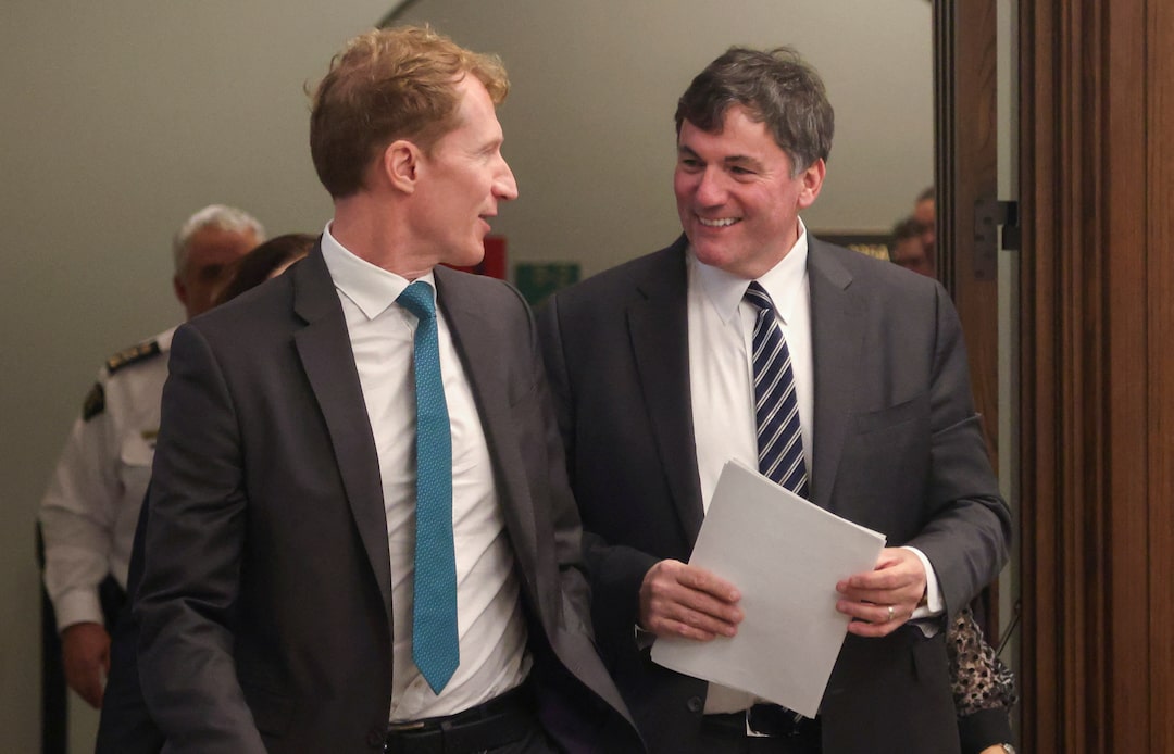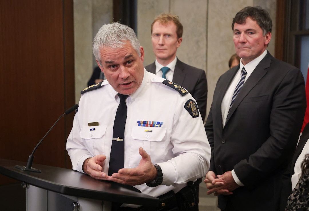 项目 1 共 5 加拿大公共安全和财政部长多米尼克·勒布朗在新闻发布会上谈论政府的边境计划,加拿大皇家骑警(RCMP)专员迈克·杜赫梅,加拿大边境服务局(CBSA)局长埃琳·奥戈曼,移民、难民和公民事务部长马克·米勒,心理健康和成瘾部长雅拉·萨克斯,以及出口促进、国际贸易和经济发展部长玛丽·吴在加拿大安大略省渥太华的国会山聆听,日期为2024年12月17日。路透社/帕特里克·道尔