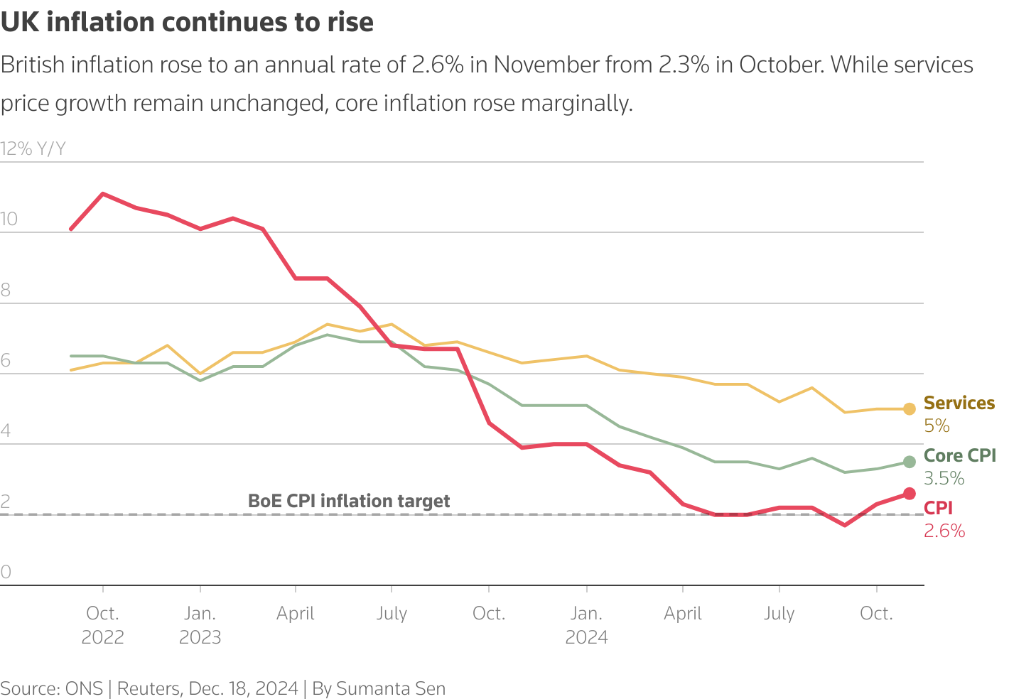 英格兰银行认为,服务通胀是潜在价格压力的关键指标,11月份保持在5.0%,与10月份持平,根据国家统计局的数据。