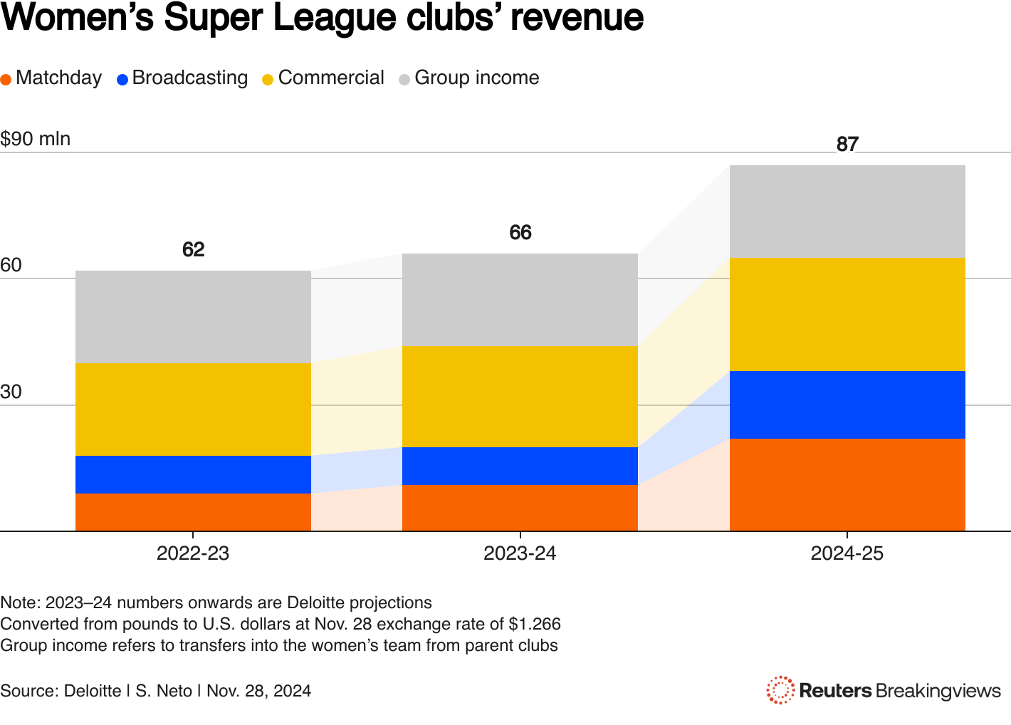 在较小、增长更快的项目上产生影响会更容易。以女子足球为例。根据 德勤的数据,英格兰顶级俱乐部在2022-2023赛季的收入约为6000万美元,同比增长50%。该机构估计,当前体育年度的总销售额将接近9000万美元。持续增长将得到新的英国电视版权 协议 的支持,该协议与天空体育签署,将在下个赛季生效,代表着根据《卫报》报道的九倍增长。向俱乐部或联赛注入资金将提供急需的投资,前提是公共投资基金能够说服某人接受这笔现金。沙特在世界经济论坛的全球性别差距 指数中排名第126位,146个国家中。另一个途径是橄榄球。纽卡斯尔猎鹰队是英超橄榄球俱乐部中七个可以被归类为“资产负债表破产”的俱乐部之一,联盟中共有10个俱乐部,根据2024年伦纳德·柯蒂斯橄榄球财务报告。东北部的球队和其他三支球队过去曾与公共投资基金(PIF)进行过交谈,《每日电讯报》报道,但没有任何实质性进展。橄榄球中有严格的所有权和投资规则。然而,沙特资金使PIF在争取放宽这些条件时拥有了一定的杠杆,可能得益于精明的投资者CVC资本合伙人(CVC.AS)现在拥有该联盟的股份,并对其增长感兴趣。缺点是这些运动规模太小,无法产生显著影响。但这可能是一个特征,而不是一个缺陷,因为PIF正试图缩减其海外投资——从30%降至18%-20%。在这种情况下,专注于更小的市场并寄希望于更高的增长,似乎比继续向已经充裕的成熟运动投入资源更有意义。关注@NetoStreisand 在 X 上这是路透社Breakingviews对2025年的预测。要阅读更多我们的预测,请点击这里。想要获取更多这样的见解,请点击这里免费试用Breakingviews。