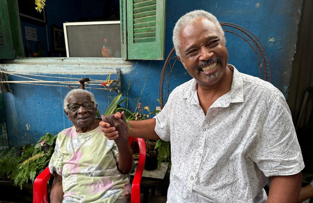 赫莲娜·达·科斯塔,99岁,和达戈贝尔托·何塞·丰塞卡,63岁,巴西圣保罗州立大学(UNESP)的教授,手牵手,地点:巴西圣托斯,2024年12月5日。路透社/莱斯·莫赖斯 巴西圣托斯,12月18日(路透社) - 赫莲娜·蒙泰罗·达·科斯塔的父亲在19世纪时作为奴隶从安哥拉被带到巴西。明年,这位99岁的老人希望能够参加一次首创的邮轮,回到她父亲的故乡。