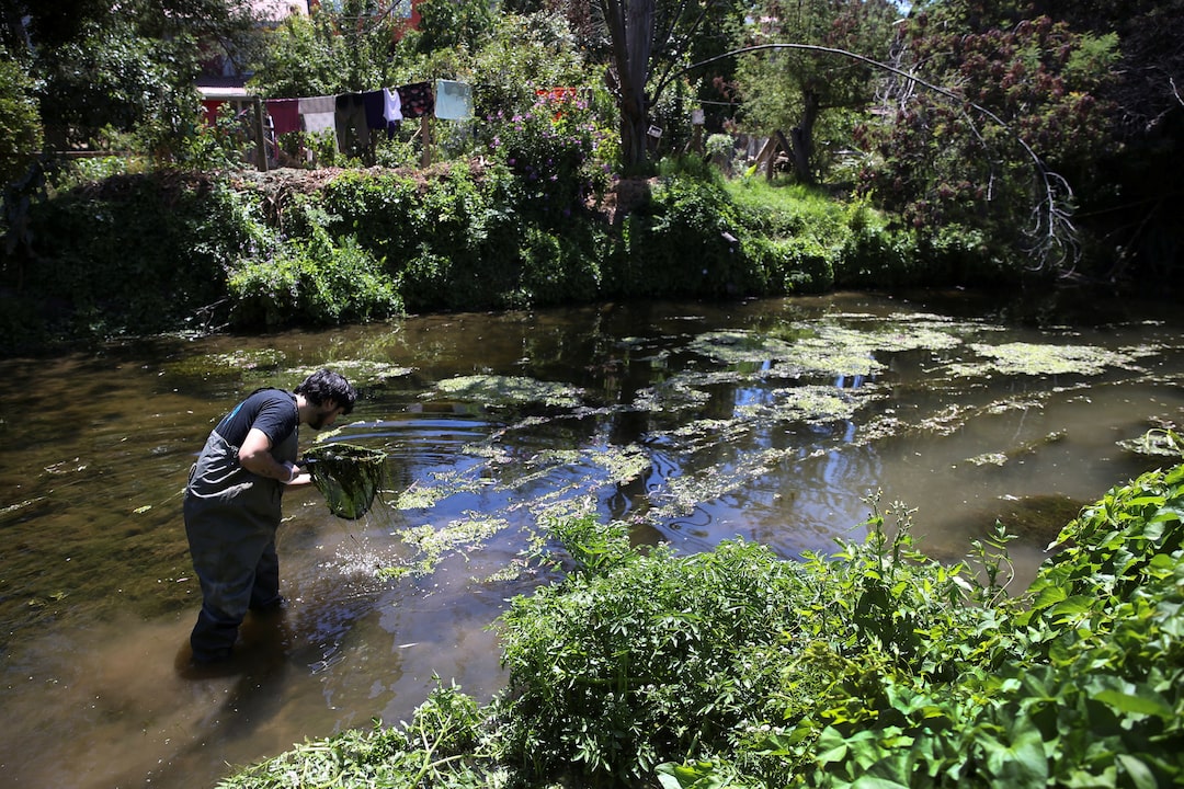 “这个河口贯穿整个城市,存在许多非法排放,”他在瓦尔帕莱索外的一条小溪中涉水时说。“即便如此,这只青蛙仍然设法生存。”