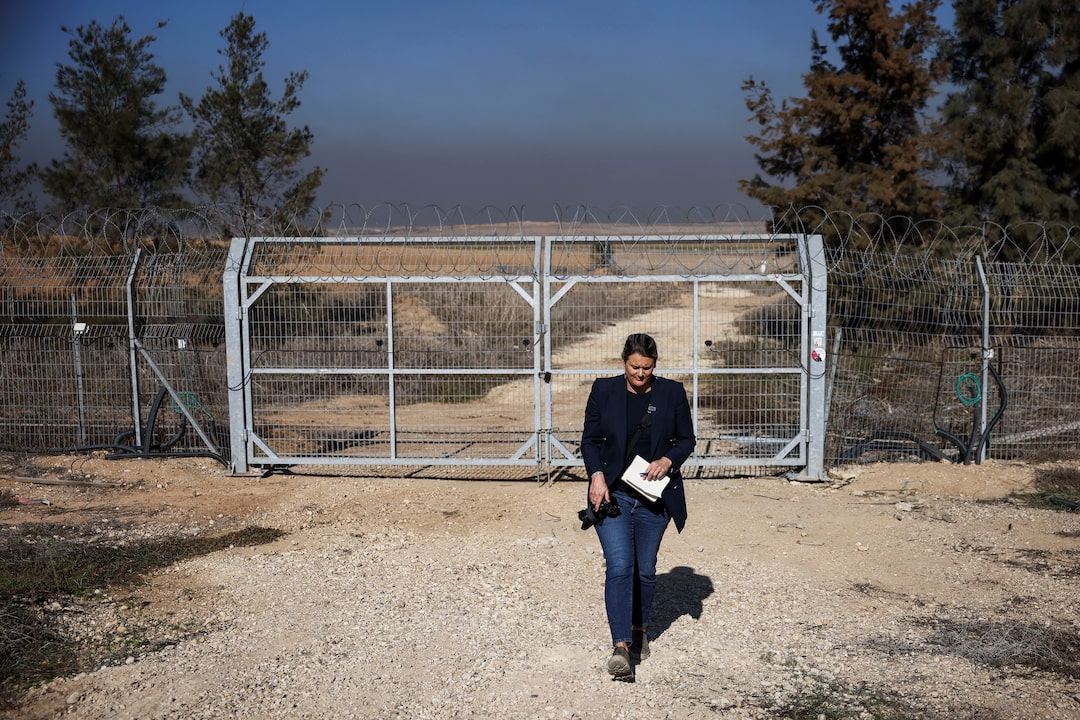 第1项,共5项 阿丽斯·吉尔·爱德华兹博士,联合国酷刑问题特别报告员,站在以色列南部基布兹卡法阿扎的一个大门前,该社区在2023年10月7日哈马斯的致命袭击中遭到严重破坏,她于2024年12月18日访问基布兹卡法阿扎。路透社/斯托扬·内诺夫