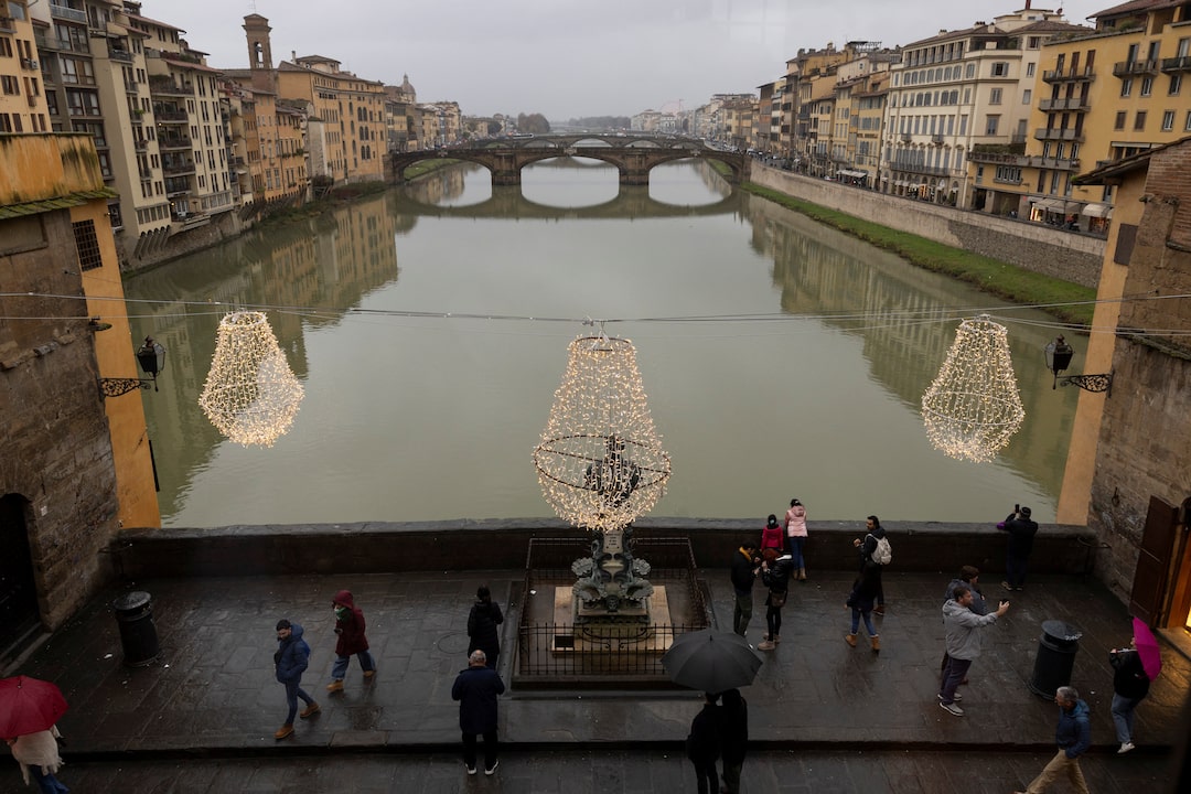 第1项,共5项 一张无人机照片显示了阿诺河上的老桥(Ponte Vecchio)和文艺复兴时期的通道,通道由乔尔乔·瓦萨里(Giorgio Vasari)建造,位于意大利佛罗伦萨,2024年12月19日。路透社/雷莫·卡西利
