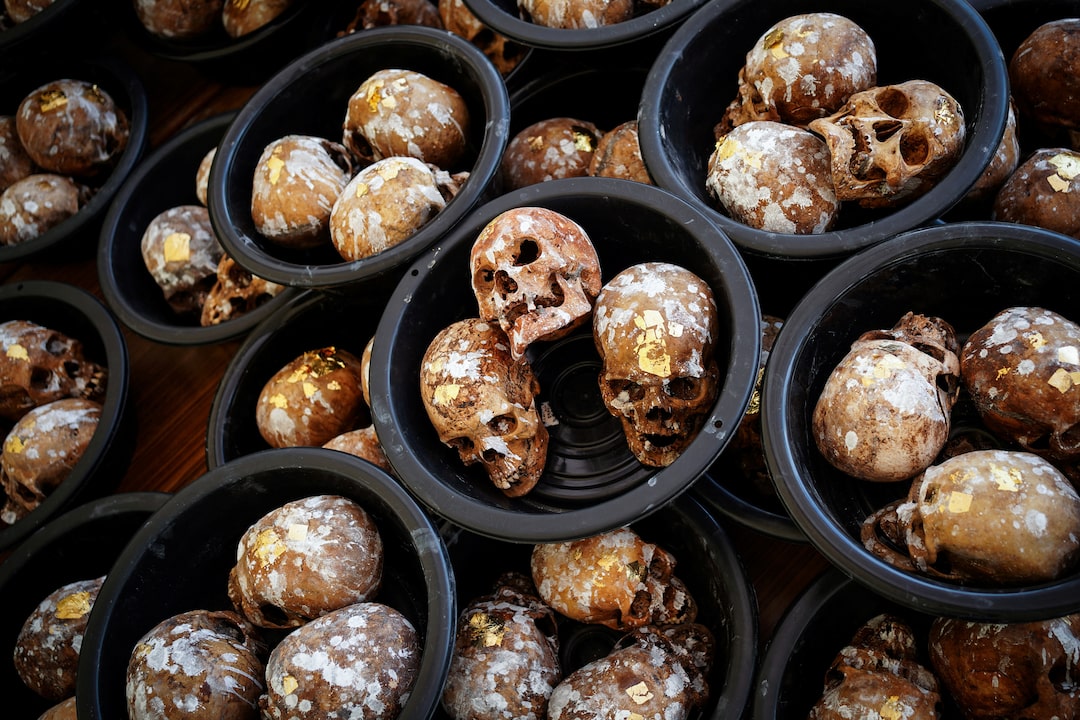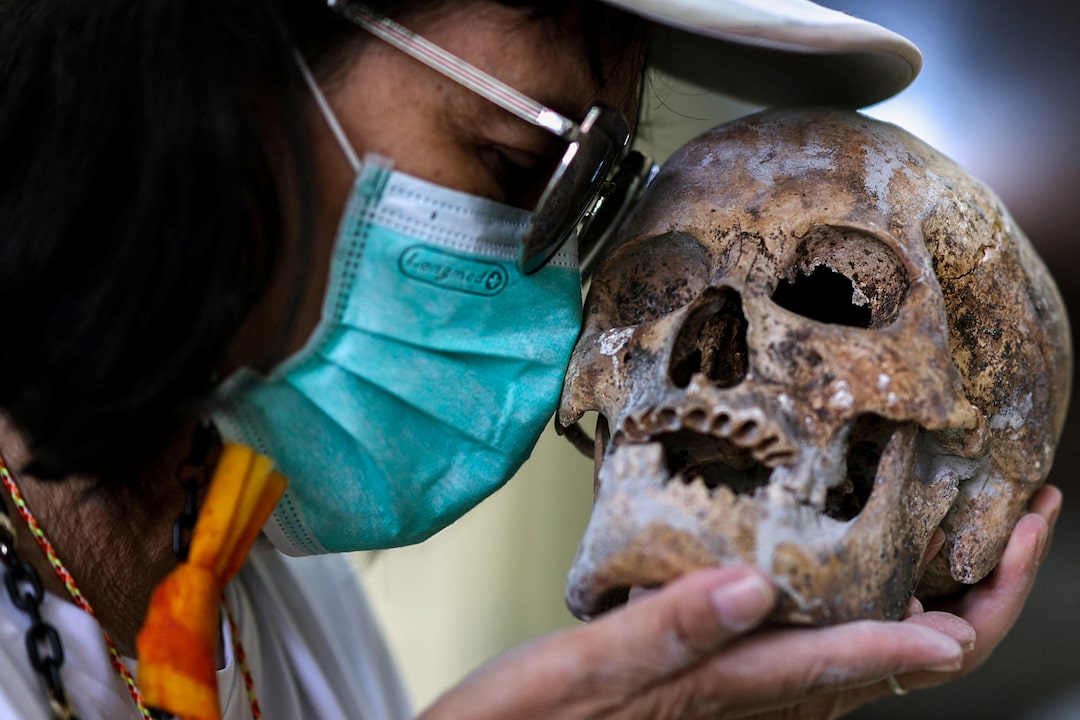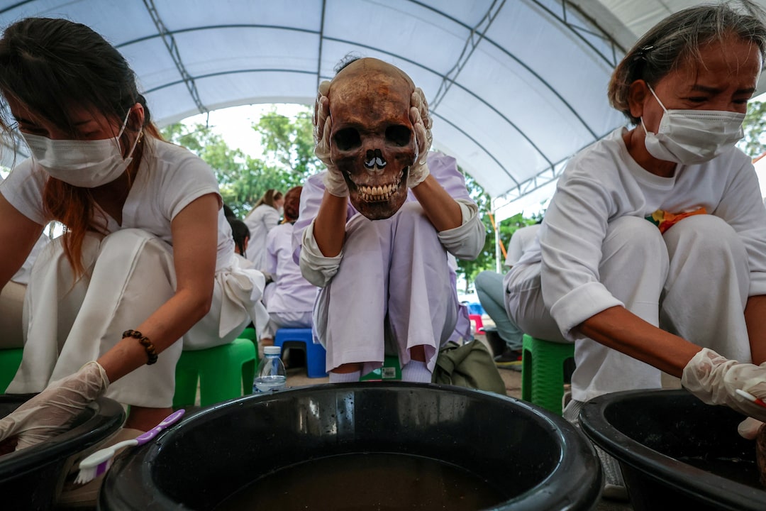 一旦被挖掘,遗骸会由佛教志愿者清洗,然后由灵媒确定其性别。