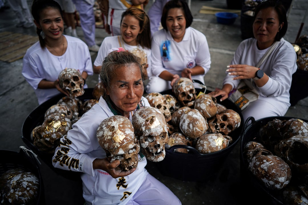 一名志愿者在泰国那空叻差斯马府的Sawang Metta Thammasathan基金会的Lang Pa Cha大规模清洗仪式上,将金箔放在一具人类头骨上,时间是2024年6月1日。随着火化日的临近,志愿者们使用牙刷和圣水…阅读更多曼谷,12月21日(路透社)——当两个月大的Bibeam在2023年11月去世时,她所在地区的寺庙拒绝为她火化,认为她太年轻,不适合进行这样的仪式。