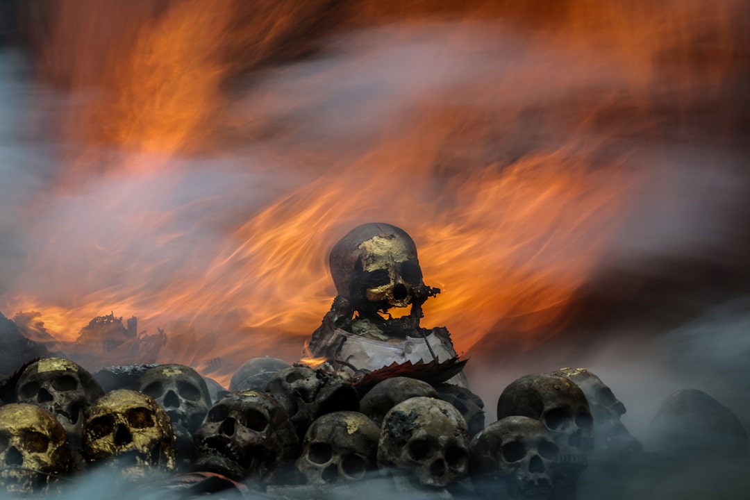 装饰好的遗体被安排在两个独立的火葬堆上——一个为男性,一个为女性。