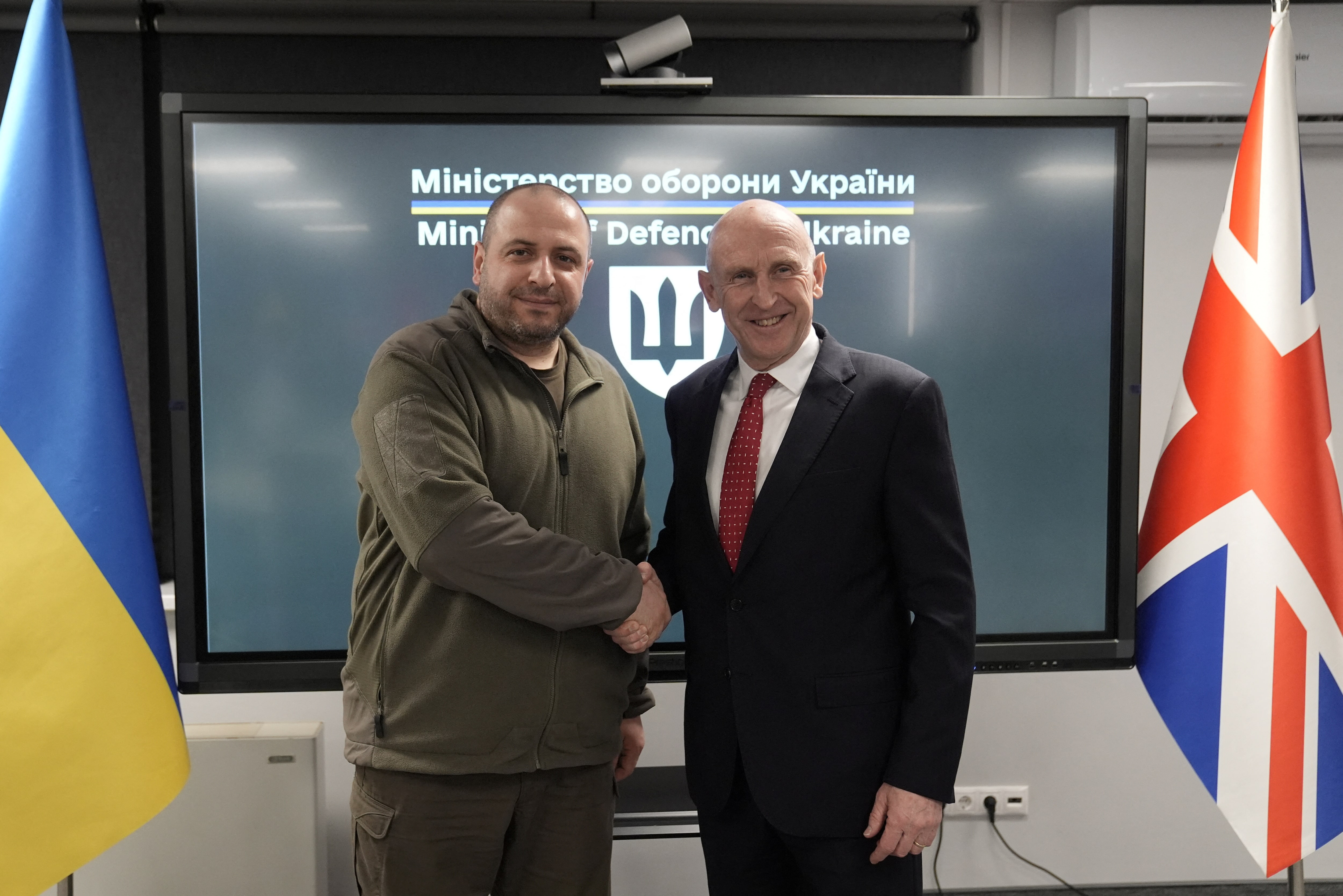 英国国防部长约翰·希利在基辅国防部会见乌克兰国防部长鲁斯特姆·乌梅罗夫,进行访问。图片日期:2024年12月18日,星期三。斯特凡·鲁索/池 via REUTERS/档案照片伦敦,12月21日(路透社) - 俄罗斯驻伦敦大使馆周六描述英国计划将超过20亿英镑(25亿美元)转移给乌克兰的计划为“欺诈方案”。