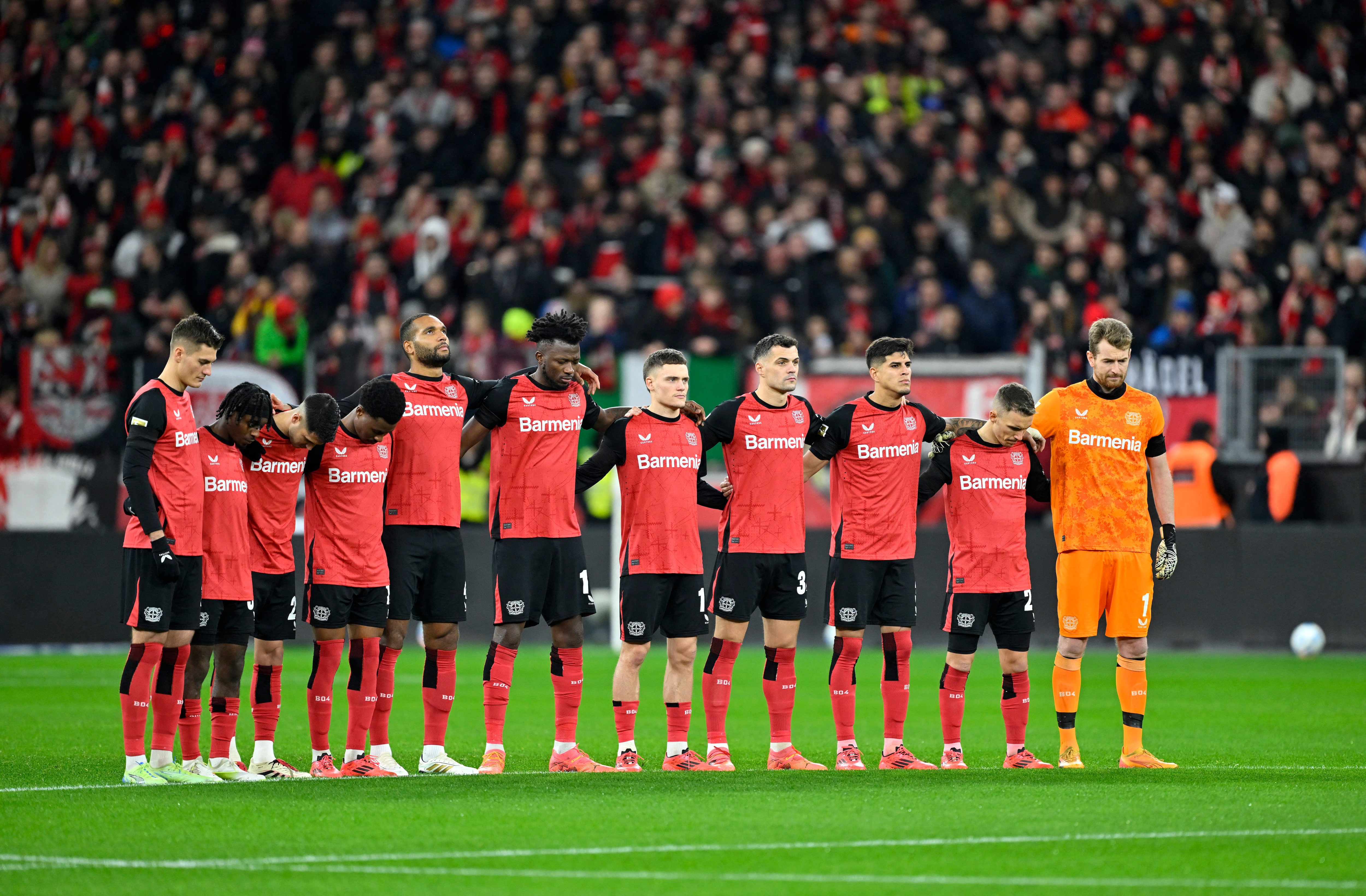 拜耳勒沃库森的球员们在与弗赖堡的德甲比赛前为德国踩踏事件的受害者默哀一分钟。拍摄:乌尔里希·霍夫纳格 - 路透社2024年12月21日(阿拉伯路透社体育服务) - 帕特里克·希克打入四球,弗洛里安·维尔茨再添一球,帮助拜耳勒沃库森以5-1大胜弗赖堡,卫冕冠军在今天星期六取得了德甲的第五场连胜。